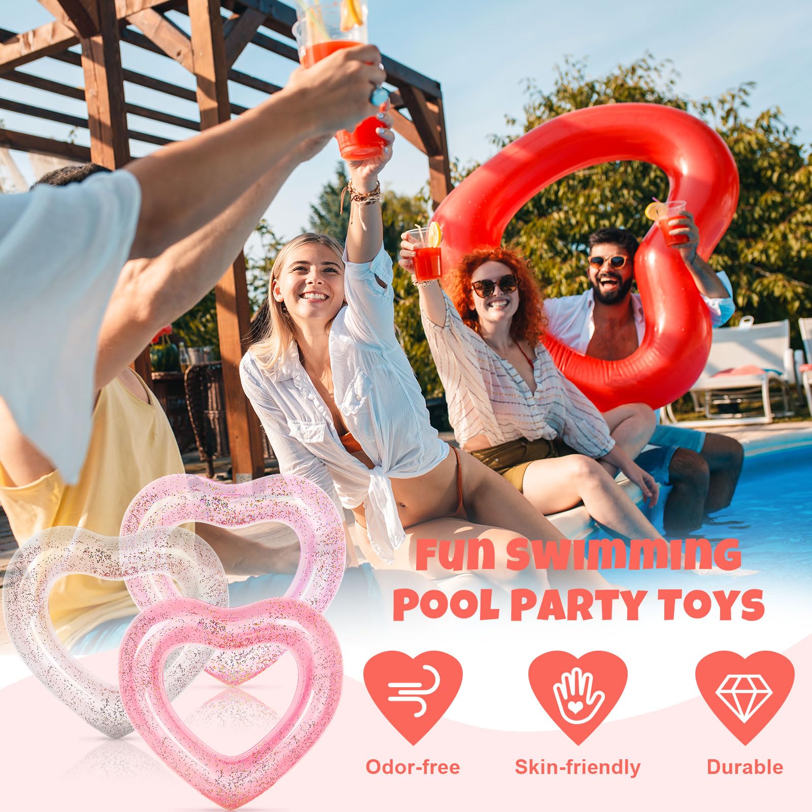View compareWhaline 3Pcs Inflatable Heart Pool Float With Glitter Inside Rose Gold Pink White Swim Heart Shaped Pool Rings Float Loungers Tube For Summer Swimming Pool Beach Bachelorette Party, 47.3 X 39.4 Inch