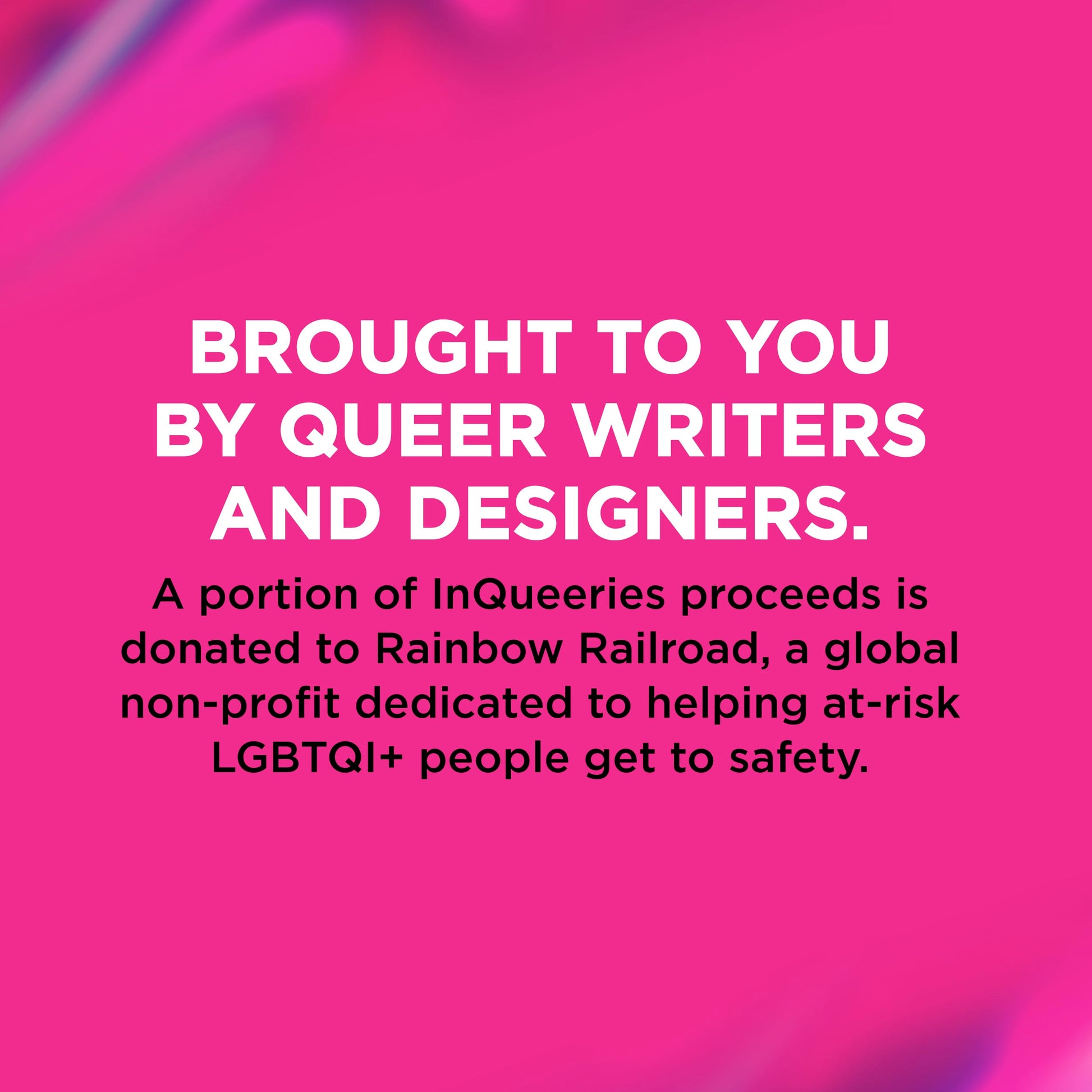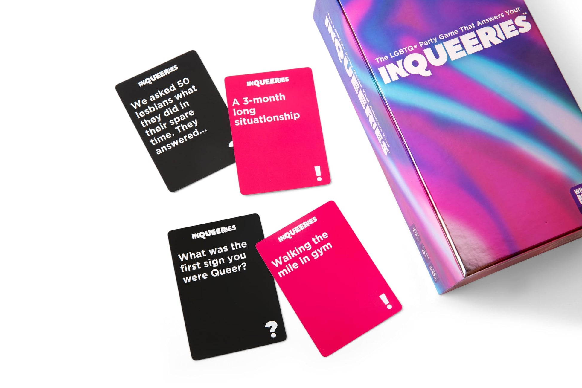 A party game but make it ?gay?. Made with all members of the LGBTQ+ community in mind InQueeries is the mature-themed card game that celebrates queer culture - just like the community that inspired it InQueeries is hilarious bright and bold. With 450 cards and plenty of raunchy humor it's perfect for your pride pregame a RuPaul's Drag Race watch party or as a gift for a friend. The best part? A portion of proceeds from InQueeries goes to global LGBTQ+ causes. Perfect for those seeking pride accessories gay games gifts for lesbians bi stuff gay stuff lesbian gifts gay gifts pride gifts lgbt game night gifts for gays lgbt games for mature-themeds queer gifts queer agenda pride collection LGBTQ+ games and queer party games.