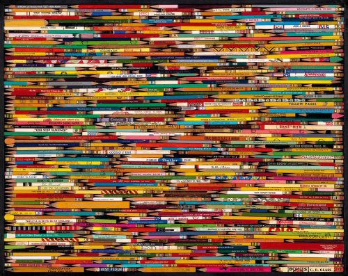 Product DescriptionA most challenging jigsaw puzzle, the White Mountain Puzzles – Pencil Collage is 1,000 pieces worthy of any skilled puzzler. A great test for the puzzler fanatic to enjoy! Captivate friends and family with fun and entertainment everyone can enjoy! This incredible collection of advertising pencils was created by artist Maureen Rupprecht, who literally glued hundreds of pencils into a frame. Talk about a challenge! Art jigsaw puzzles are a fun and inexpensive way to enjoy beautiful works of art first hand! Jigsaw puzzles are also used to boost cognitive skills; develop hand-eye coordination, fine motor skills, problem solving, shape recognition, memory, and task completion. The White Mountain Puzzles – Pencil Collage includes 1,000 unique interlocking pieces made of sturdy blue chipboard on recycled paper. Extra large sized pieces for easy handling. Completed puzzle dimensions: 24 x 30 inches. Every White Mountain Puzzle is proudly manufactured in America with a 100% customer satisfaction guarantee.From the ManufacturerWhite Mountain Puzzles Pencil Collage. Artist: Maureen Rupprecht. Made in the United States. Recycled material. 1000 pieces puzzle.