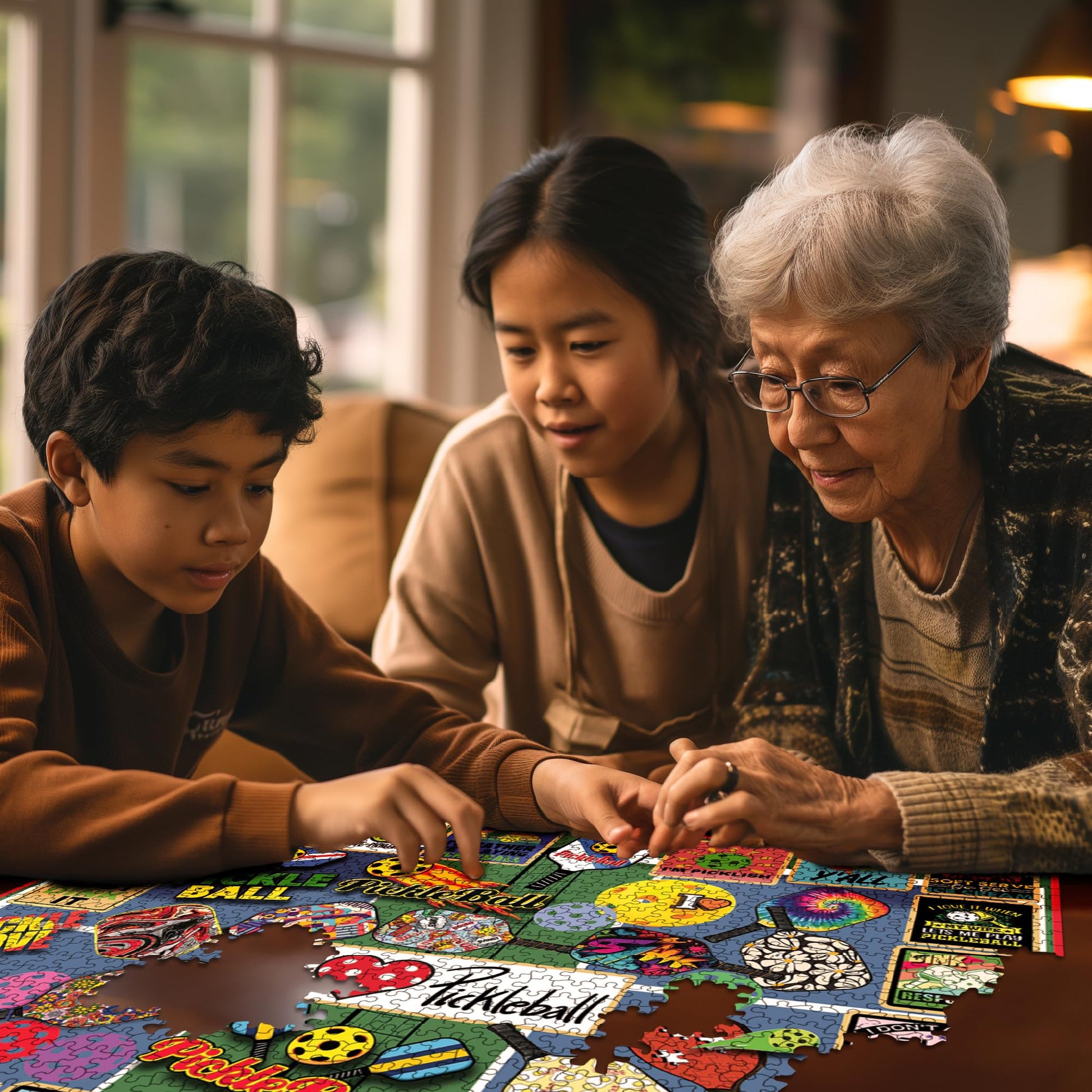 - Q: What makes this puzzle a good gift choice for sports enthusiasts? A: This puzzle features vibrant imagery related to the sport of pickleball, including paddles and balls, making it a perfect gift for sports enthusiasts. Its engaging design and colorful palette capture the excitement of the game, appealing to fans of all ages.