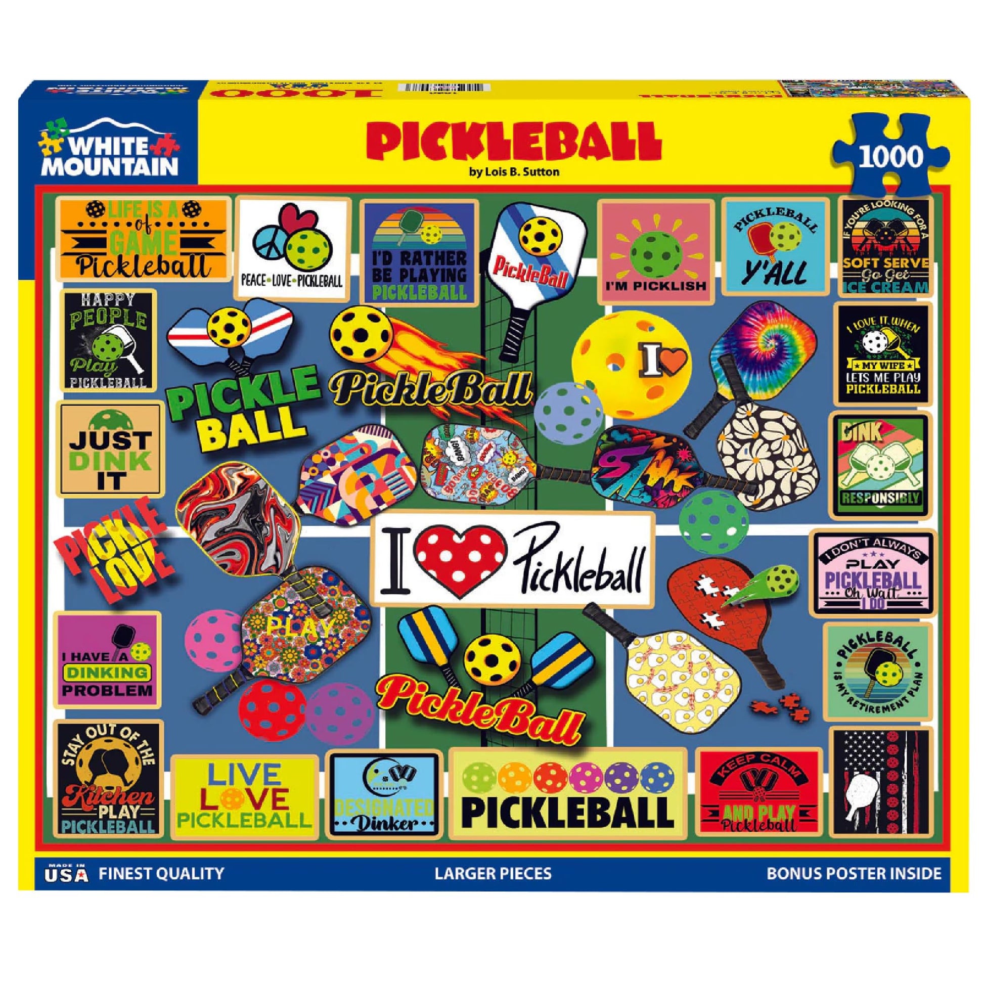 - Q: Does the puzzle come with any additional resources to assist in assembly? A: Yes, the White Mountain Puzzles - Pickleball jigsaw puzzle includes a poster featuring the completed image, providing a helpful reference for puzzlers as they work on their assembly.