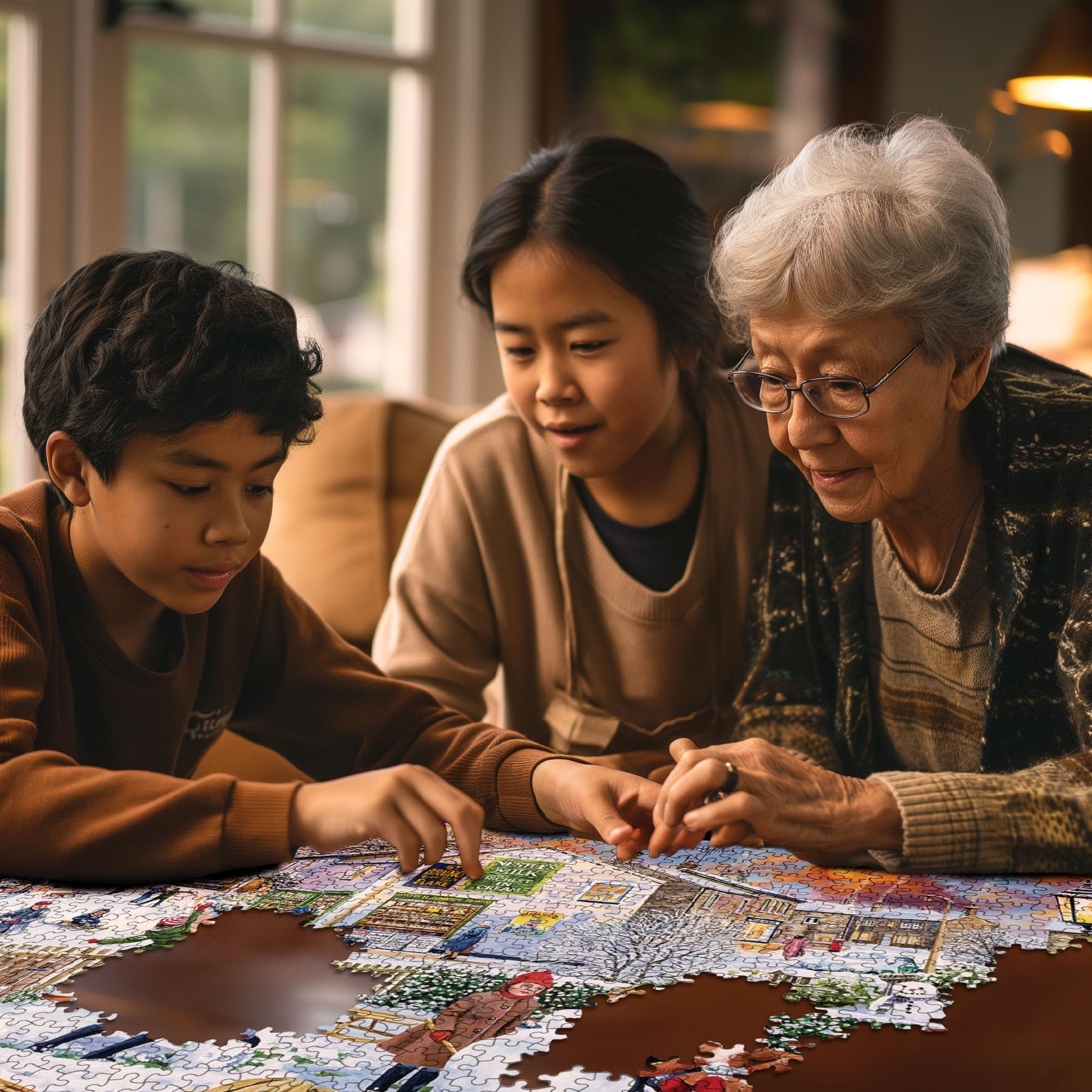 - Q: What makes this puzzle a good choice for family activities? A: This puzzle promotes quality family time by allowing parents and children to relax and work together on a shared goal. It includes a reference poster with the completed image, making it easier for everyone to contribute to the puzzle-building experience.