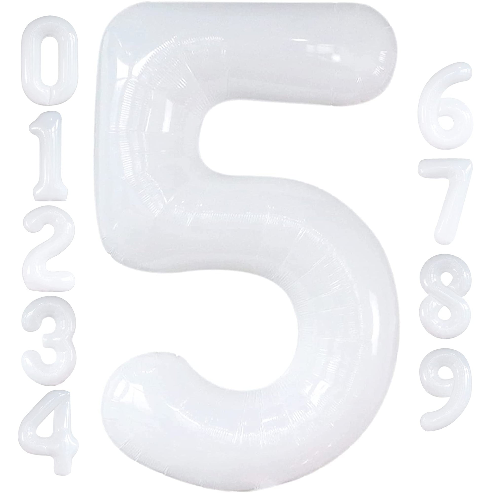 - Q: What size are the White Number 5 Balloons? A: The White Number 5 Balloons are large, measuring 40 inches in height, making them an eye-catching addition to any 5th birthday or anniversary celebration.