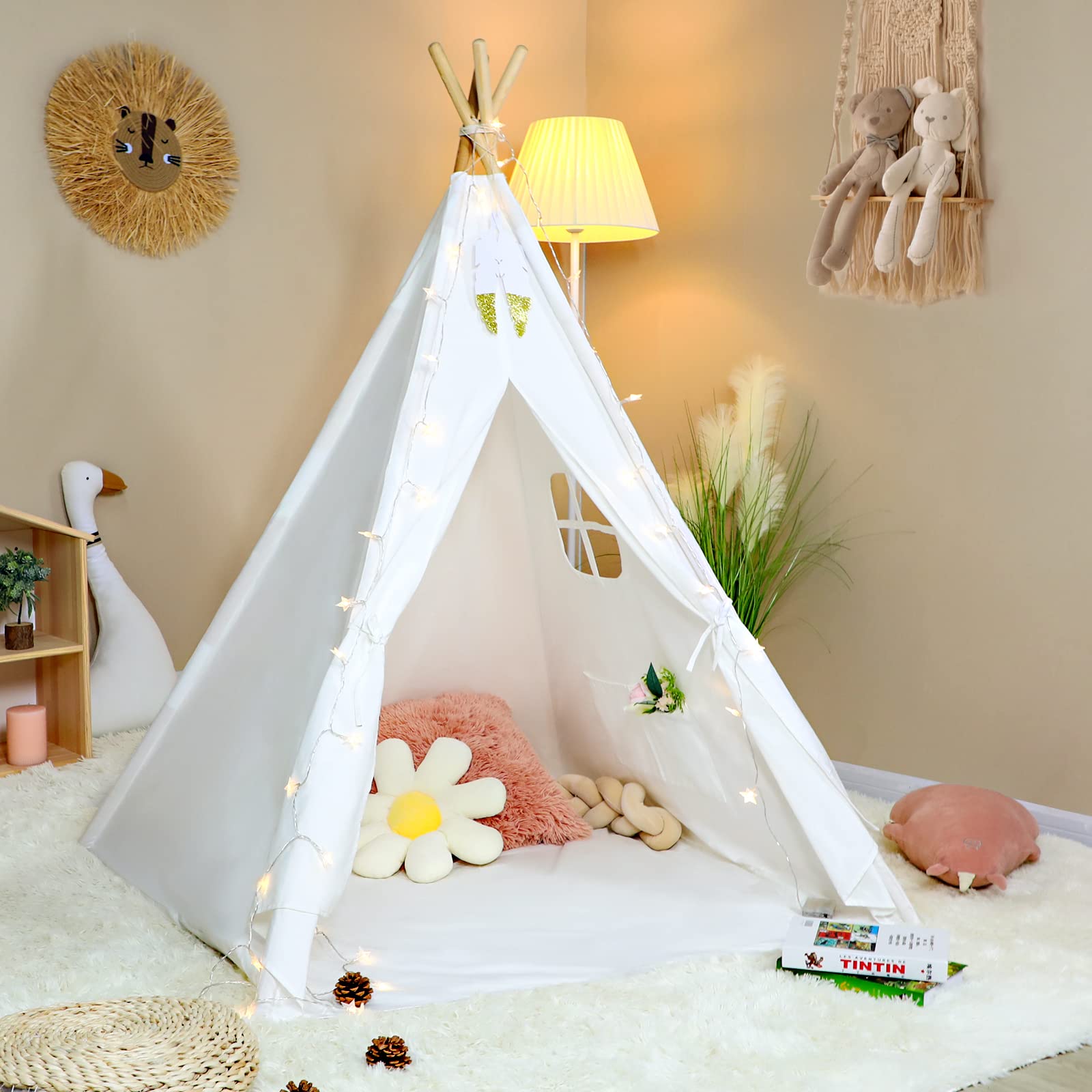 View compareWilhunter Kids Teepee Tent With Bottom Cloth, Paper Feathers & Flags, Gift For Boys & Girls, Toys For Toddler, Playhouse For Indoor Decor Party Games