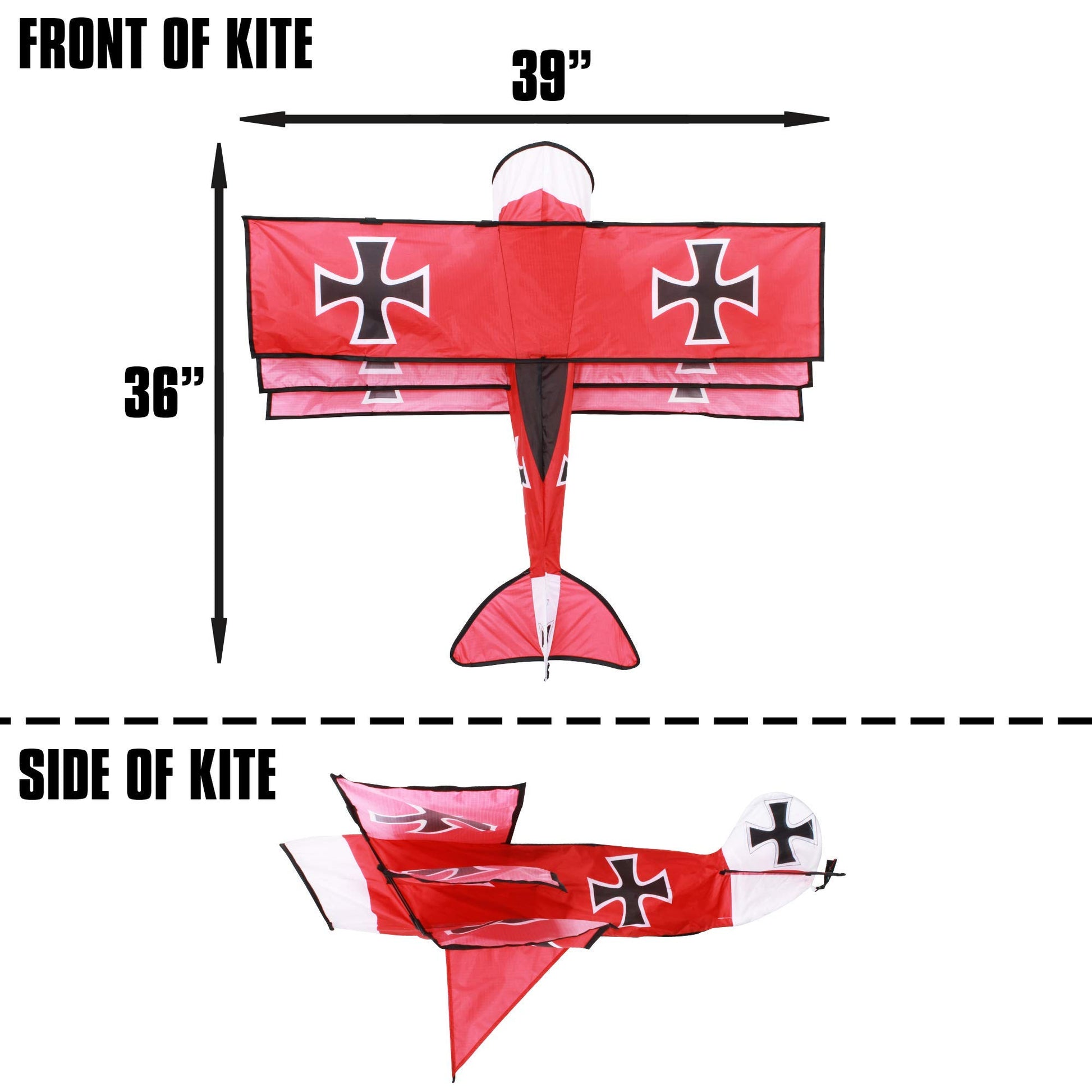 Red Baron Kite: This three dimensional kite combines quality materials with great engineering for easy assembly and a standout flying performance | SuperSize: The SuperSize 3D assortment features a fiberglass frame and ripstop nylon for the ultimate in durability; Explore spinbox, dragon, pirate ship, space shuttle, and Red Baron designs | High Quality: Featuring innovative designs in ready to fly configurations, our kites feature fiberglass construction, durable, Ripstop Nylon and stable flight; Easy to assemble | Kite Types: Explore kites for adults and kites for kids, kites for girls and kites for boys; Choose from gliders, nylon kites, poly kites plus accessories including kite handles, lines, reels and winders | Fun for the Entire Family: We believe in creating unique designs made with quality materials; Perfect for playtime and collecting, Brainstorm presents a huge variety of kites, glass figurines, lawn ornaments and games | Supersize | 3 dimensional | Ready to Fly | 39' wingspan | Fiberglass frame