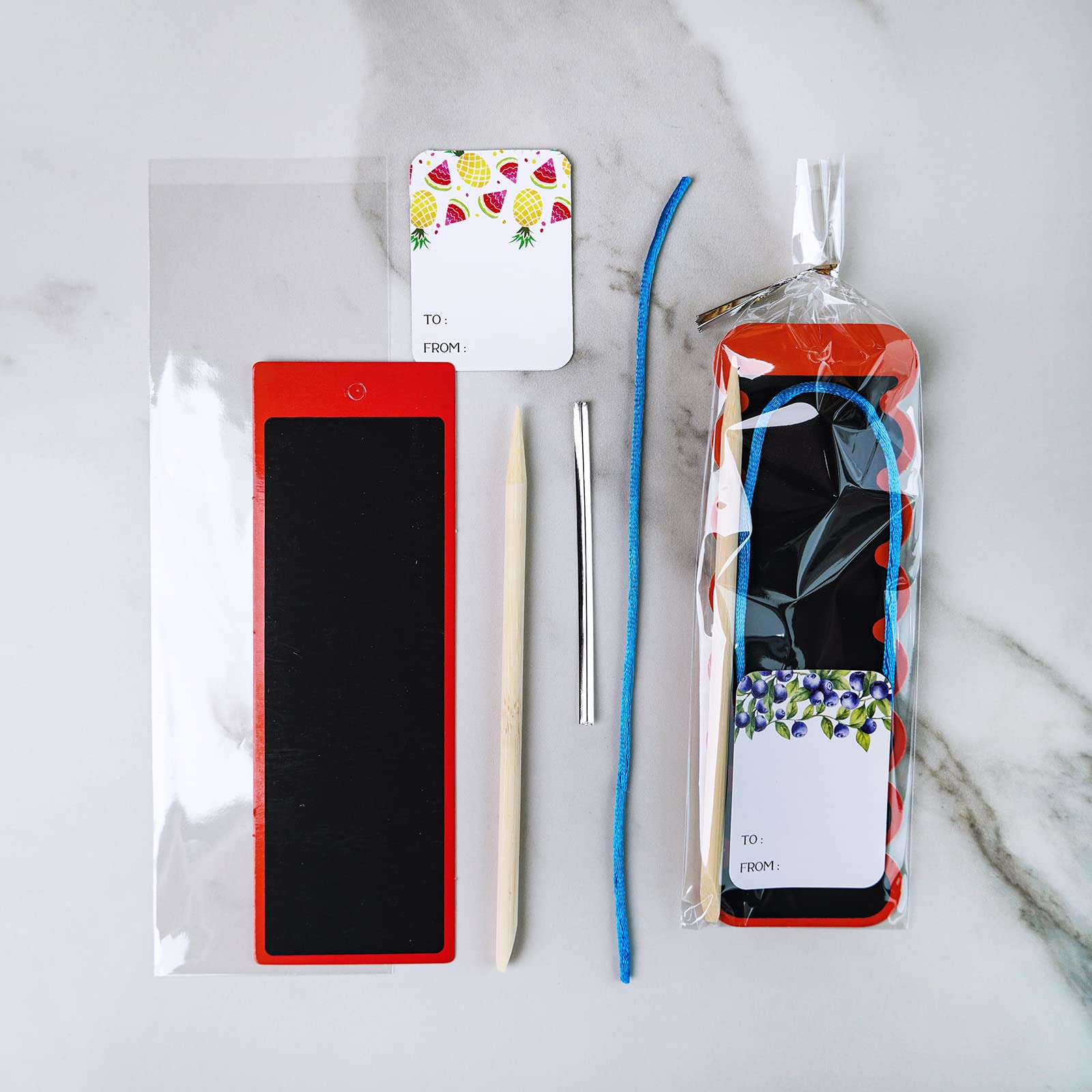 Embrace your creativity with Winlyns Rainbow Scratch Art Bookmarks Craft Kit! This kit includes 48 sets of 6 styles of scratch-off art bookmarks, with scratching tools, satin cords, and gift stickers. Each bookmark is paired with a scratch stick, bag, ribbon cord, twist tie, and gift sticker, ensuring a complete experience for each participant. Nurturing creativity, imagination, and self-expression, this kit offers screen-free entertainment that is perfect for honing writing or drawing skills. It is ideal for kids, olders, and adults who enjoy arts, crafts, and personalizing bookmarks. These rainbow scratch-off bookmarks are perfect for gift-giving, indoor activities, family time, classroom projects, party favors, and creative pastimes. The compact and portable design makes the entire set conveniently portable, suitable for various uses, and easy to store. Scratch art is an enjoyable, engaging, and mess-free activity that is perfect for various occasions such as family activities, classroom events, holiday parties, and birthday celebrations. After crafting your custom designs, attach the satin cords and use the bookmarks in your favorite books - an entertaining way to encourage a love for reading. These rainbow scratch-off bookmarks also make exceptional gift tags, sticky notes, name tags, placeholders, gift toppers, and more. Integrate them into card-making, scrapbooking, and other artistic endeavors. They offer a distinctive and interactive experience that fosters creativity and connection among participants. Our rainbow scratch art kits include clear plastic bags and twist ties for creating individual gift sets. Utilize the included gift stickers for a special touch. These charming rainbow scratch bookmarks make perfect party favors, birthday presents, class prizes, reading rewards, classroom handouts, holiday gifts, and more. Everyone will cherish these delightful DIY bookmarks for various purposes.