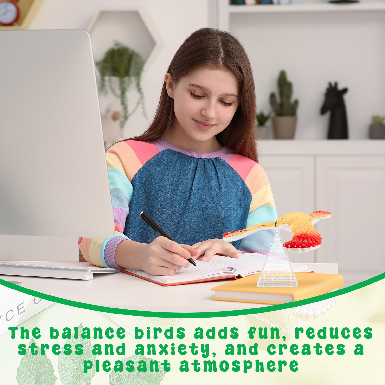 WinnerWhy 8 Pcs Balance Bird Gravity Bird with Pyramid Combination Physical Science mature-themeds Office Desktop Novelty Eagle Trick Party Toy for Science Lovers Teachers Gift Random Color