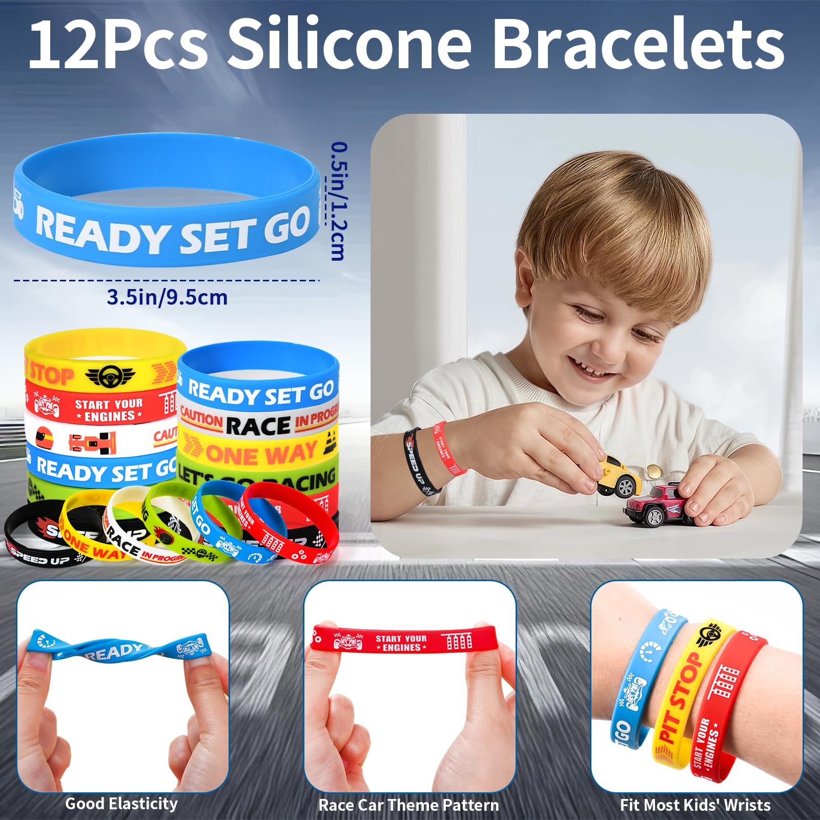 Winrayk 12 Sets Race Car Party Favors Birthday Supplies Racing Drawstring Bags Luminous Tattoo Stickers Boys Kids Racing Gifts T