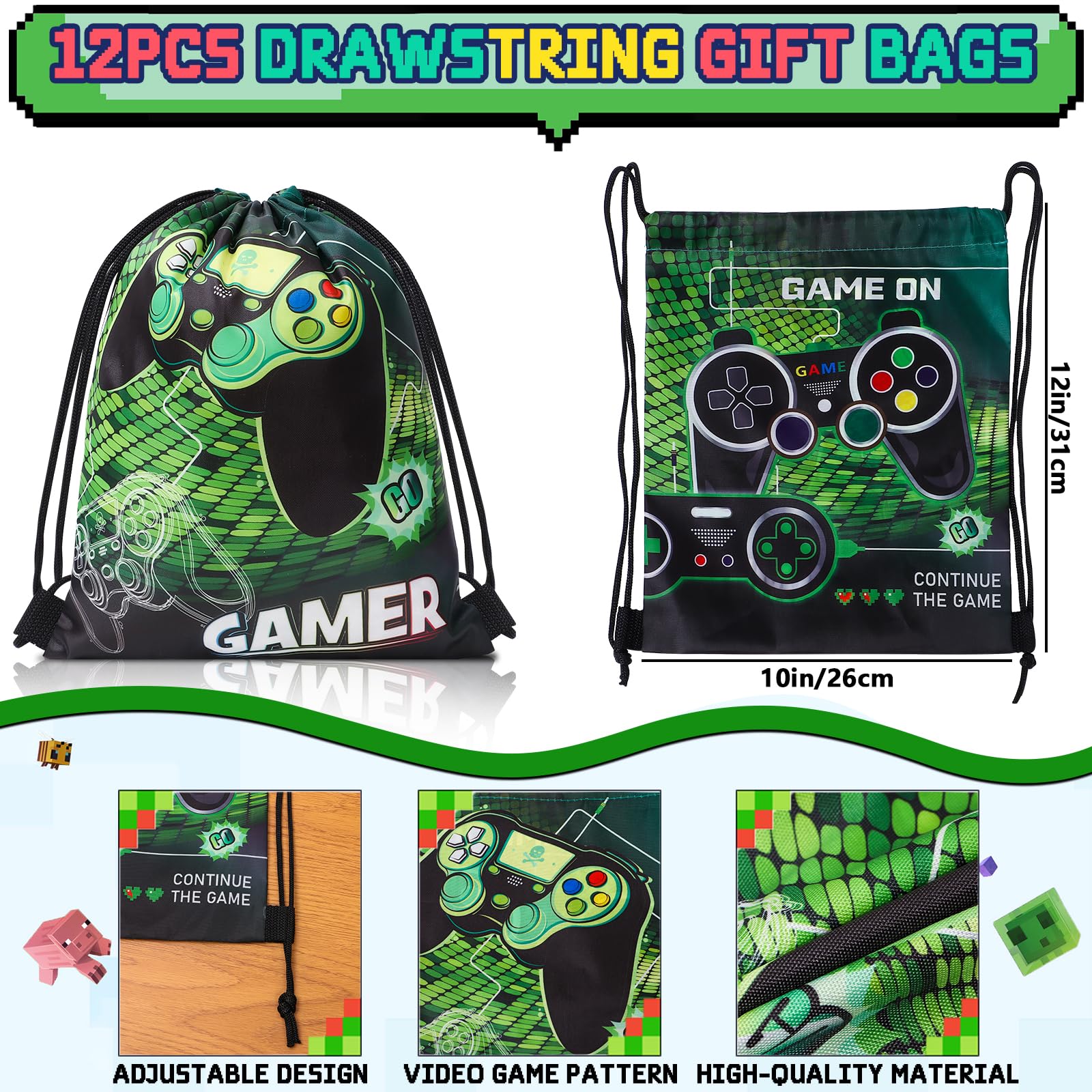 Winrayk 12 Sets Video Game Party Favors Gamer Birthday Supplies, Gaming Drawstring Bags Glow In The Dark Tattoos Stickers, Video Game Gifts Toys Game On Goodie Bag Stuffers Gamer Party Favors Supplies