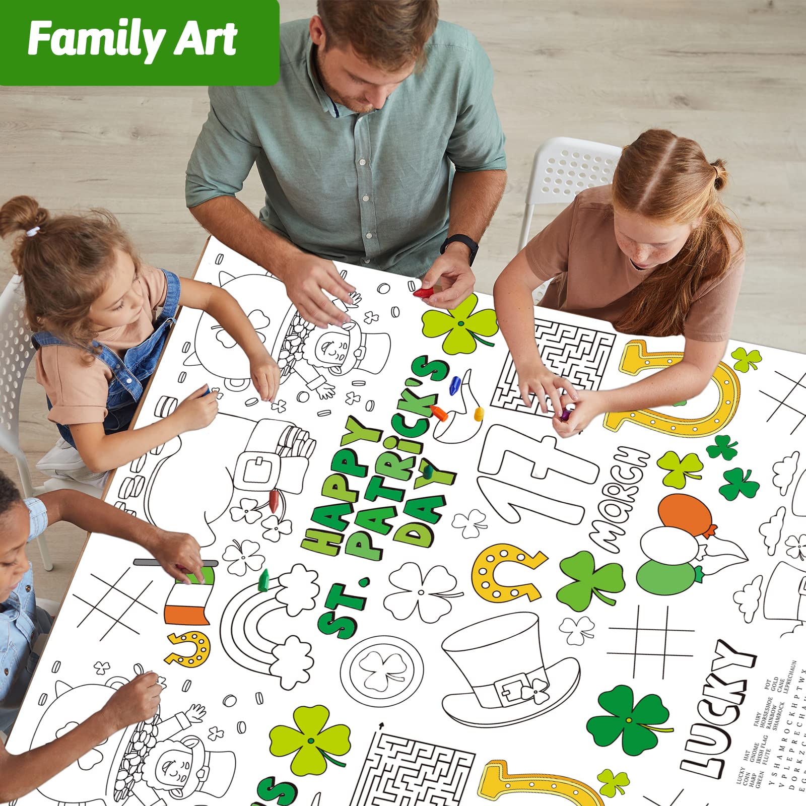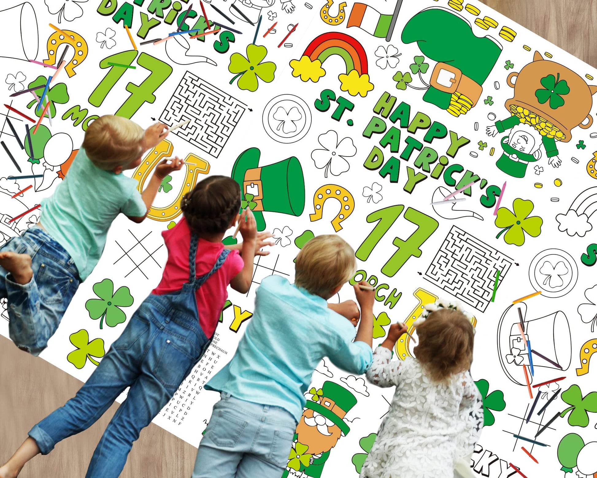 Wiooffen 47''X 82'' St. Patrick'S Day Giant Coloring Tablecloth Posters Activity For Kids, Huge Holiday Color-In Paper Poster Ta