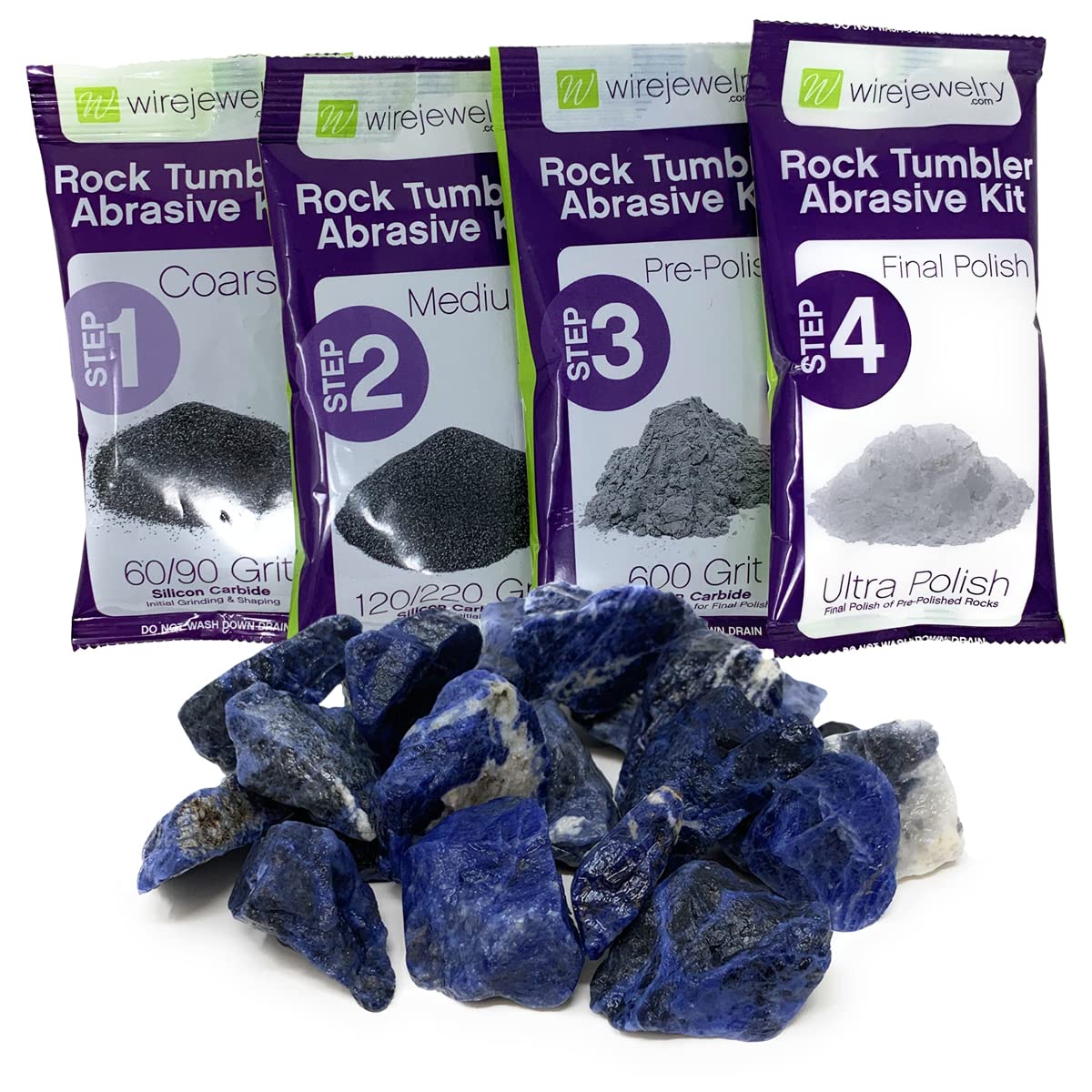 Wirejewelry Sodalite Rock Tumbler Refill Kit - 1.5 Lbs. of Sodalite Stone and 1 Batch of 4 Step Abrasive Grit and Polish