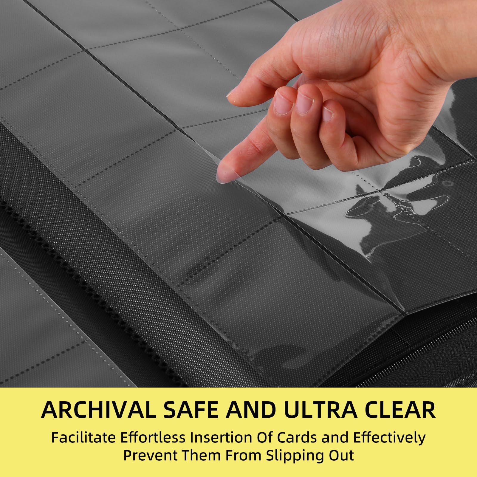 Water-Resistant Exterior for Added Protection The water-resistant exterior of the card binder not only provides an extra layer of protection against spills and moisture but also adds a sleek professional look to your collection. The sturdy construction ensures that the card binder can withstand frequent use and travel making it a reliable long-term storage solution. Enhanced Card Protection and Display Our card binder's sleeves are crafted from acid-free tear-resistant and scratch-proof materials ensuring your cards are not only securely organized but also maintained in pristine condition. The ultra-clear design of the card pages allows for easy display and viewing offering a crystal-clear experience that showcases your collection in its best light. Versatile Storage for Various Card Types With pocket size dimensions of 2.7 x 3.8 (6.8cm x 9.7cm) and binder size dimensions of 17.5 x 13.3 (44.5cm x 33.8cm) this card binder is expertly crafted to accommodate a wide range of standard-sized trading cards. It is compatible with Magic: The Gathering (MTG) cards Trading Card Game (TCG) cards game cards baseball cards football cards sports cards board game cards and more. The side loading pockets facilitate effortless insertion of cards and effectively prevent them from slipping out. Reinforced Pages for Optimal Display Each page is reinforced with padding and designed to resist warping making them perfect for displaying cards without any unwanted bends or creases. The center section has been deliberately expanded to eliminate the risk of cards bending at the first column ensuring your entire collection looks its best. Product Features: Card Binder Size: 17.5 x 13.3 x 1.6. Pocket Size: 2.7 x 3.8. Fit all standard-sized trading cards. enhanced PU cover and acid-free sleeves. Capacity: 16 Pocket Card Binder to fit 1024 Cards. Available Colors: Black Blue White Yellow Red