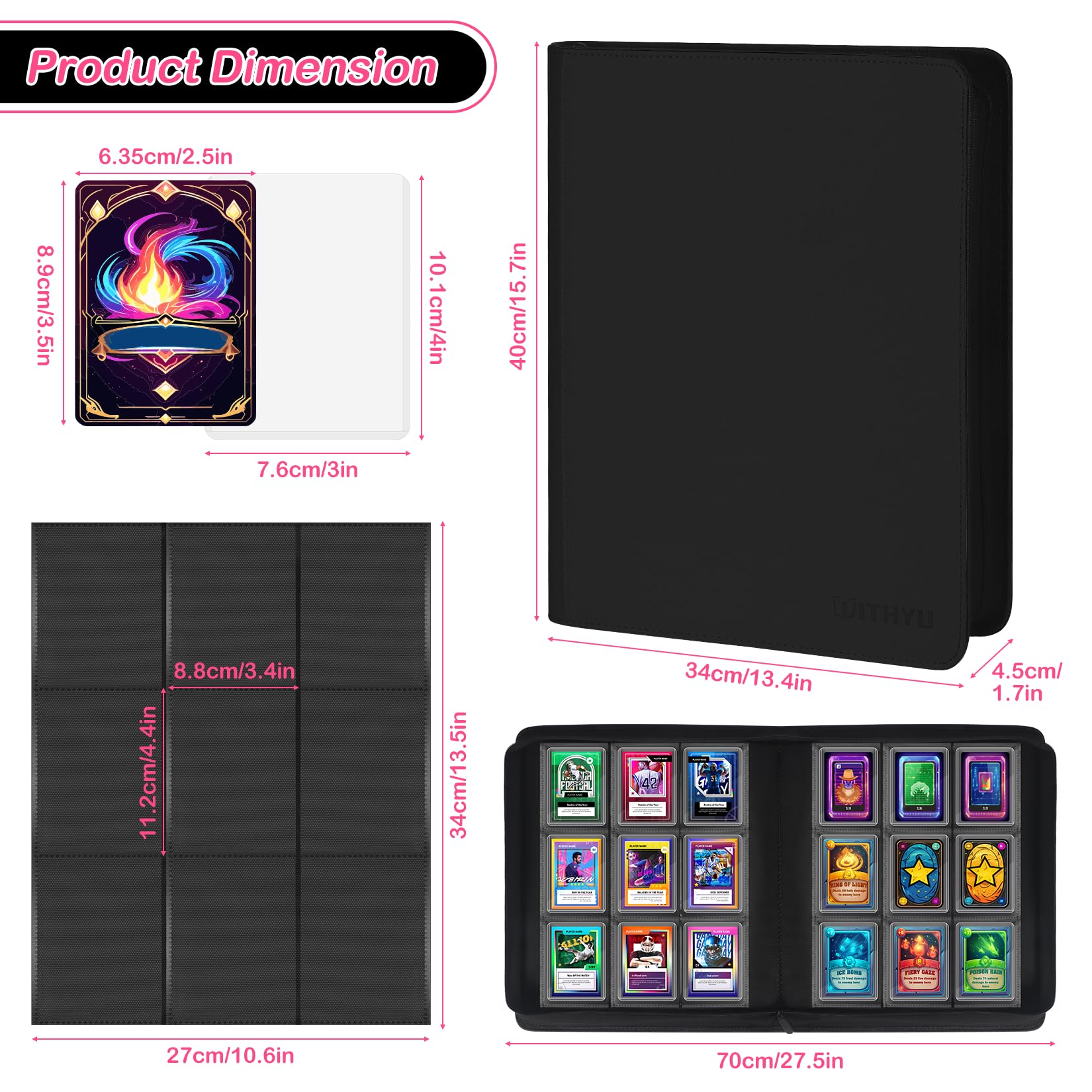 WITHYU Toploader Binder Holds 360 Top Loaders 9 Pocket Ringless Card Holder for 3 x 4 Rigid Cards Trading Card Album with 20 Toploaders for Sports TCG MTG (Pink)