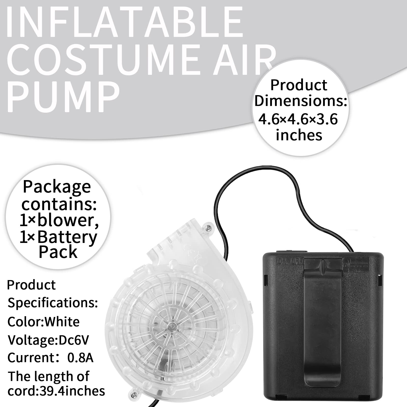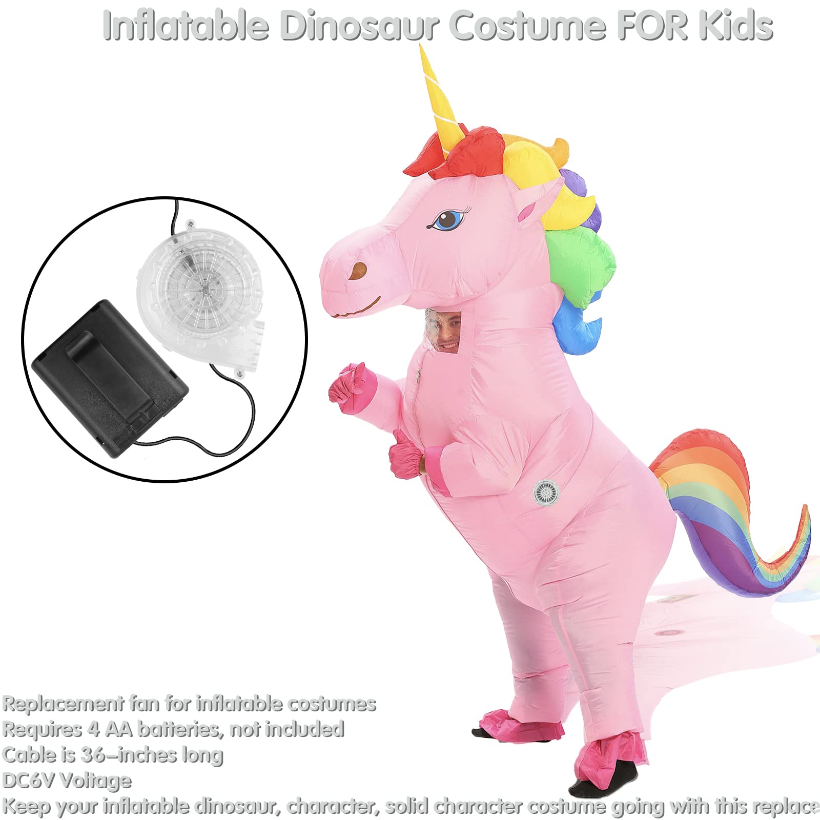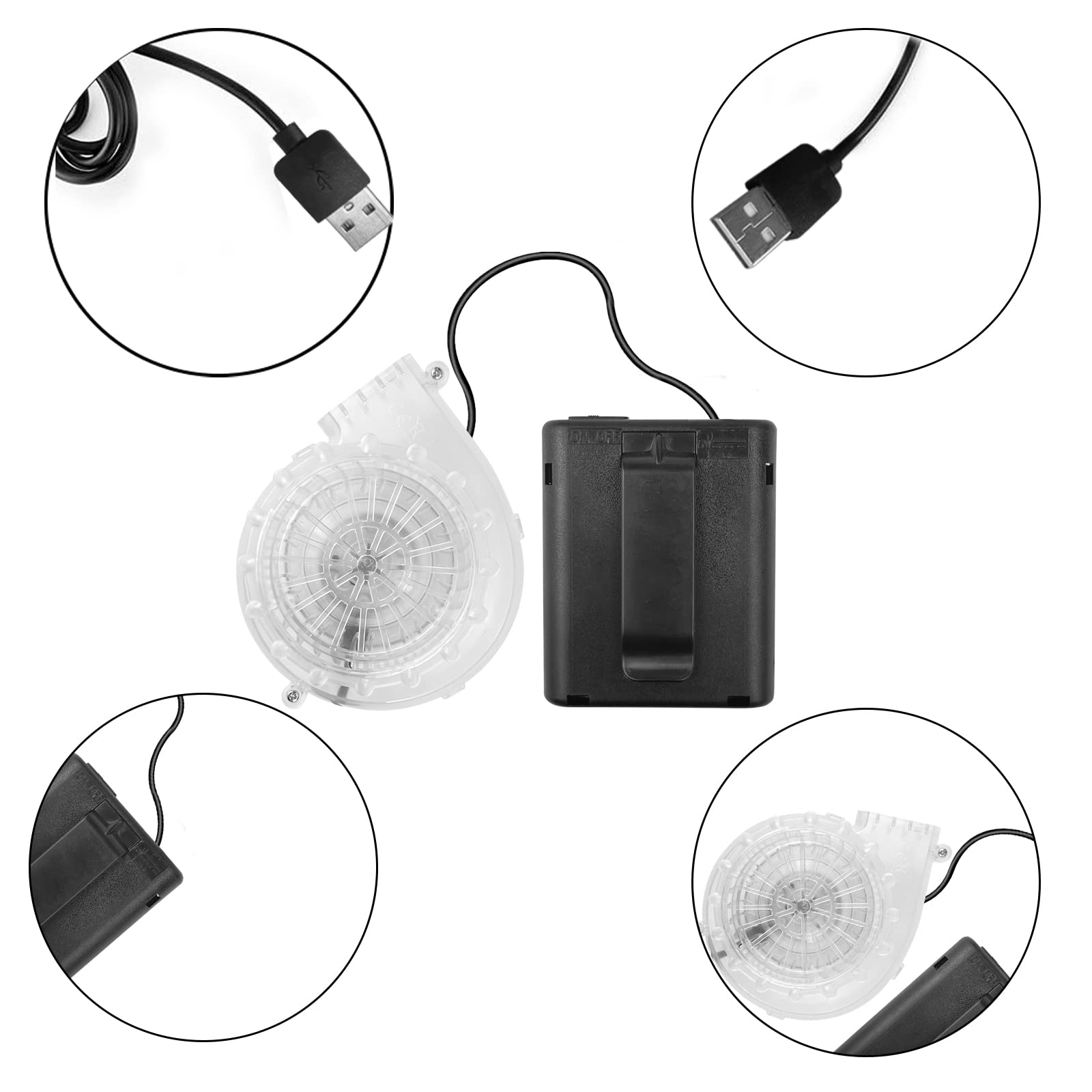 Usb Mini Upgrade Inflatable Costume Fan Replacement Blow Up Blower Potable Fans For Dinosaur Inflatable Costume Doll Mascot Head Or Other Inflatable Game Clothing Are You Looking For A Perfect Replacement Of Your Mini Air Pump From Inflatable? Here We Come - We Have Various Colors Of Mini Blowers That Can Fit Yu Most Inflatable Costumes, Such As Dinosaurs, Unicorns, Cows, Dragons, Bears, Piglets, Monkeys, Rabbits And Other Inflatable Costumes. ?Upgraded Version Super Quality?New Upgrade High Quality Material And Structure.The Plastic Mini Blower Has Lower Noise, Longer Life And Greater Air Volume. ?Perfect Size ?4 Aa Batteries (Not Included) For The Costume Battery Pack.The Costume Blower Cable Is About 42 Inches. ?Versatility With Usb?Usb Interface With Battery Case Design Can Connected With Power Bank. Perfect Replacement For Your Inflatable Costume. ?Most-Widely Replacement? We Offer High Quality And Portable Mini Fan For Inflatable Costumes. It'S So Convenience And Widely Replacement The Inflatable Costume Battery Pack Replace. ?Attention?It Is Not Recommended To Use It Continuously For A Long Time.