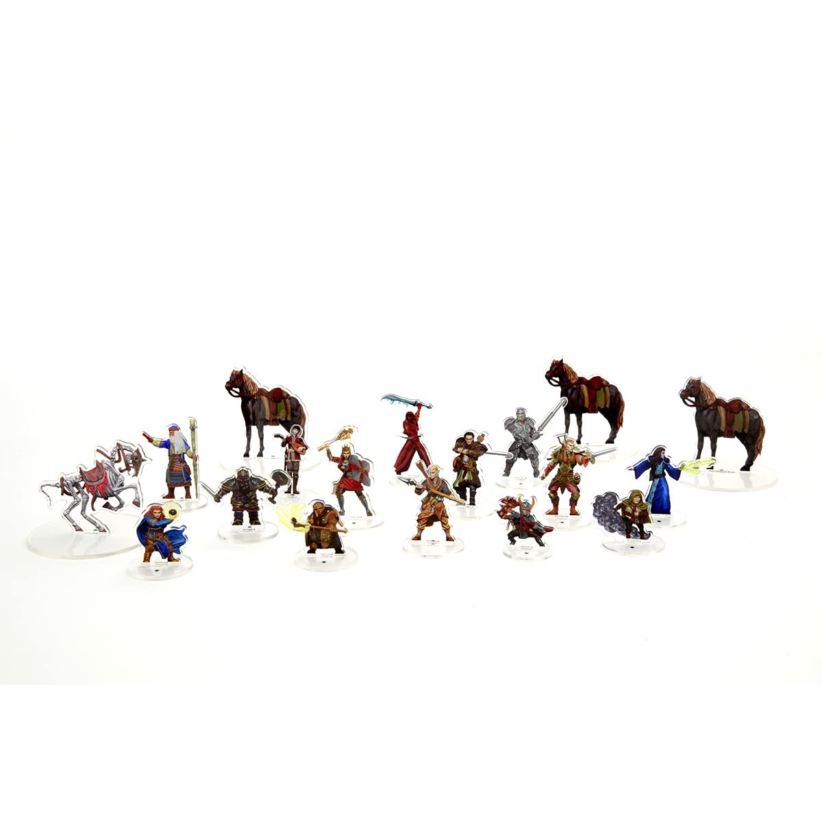 - Q: What types of miniatures are included in the WizKids D&D Essentials Players Pack? A: The WizKids D&D Essentials Players Pack includes a variety of miniatures such as a Male Human Fighter, Female Human Rogue, Male Human Wizard (Archmage), Female Human Cleric, and several others including different races like Dwarfs and Elves, as well as Riding and Skeletal Horses.