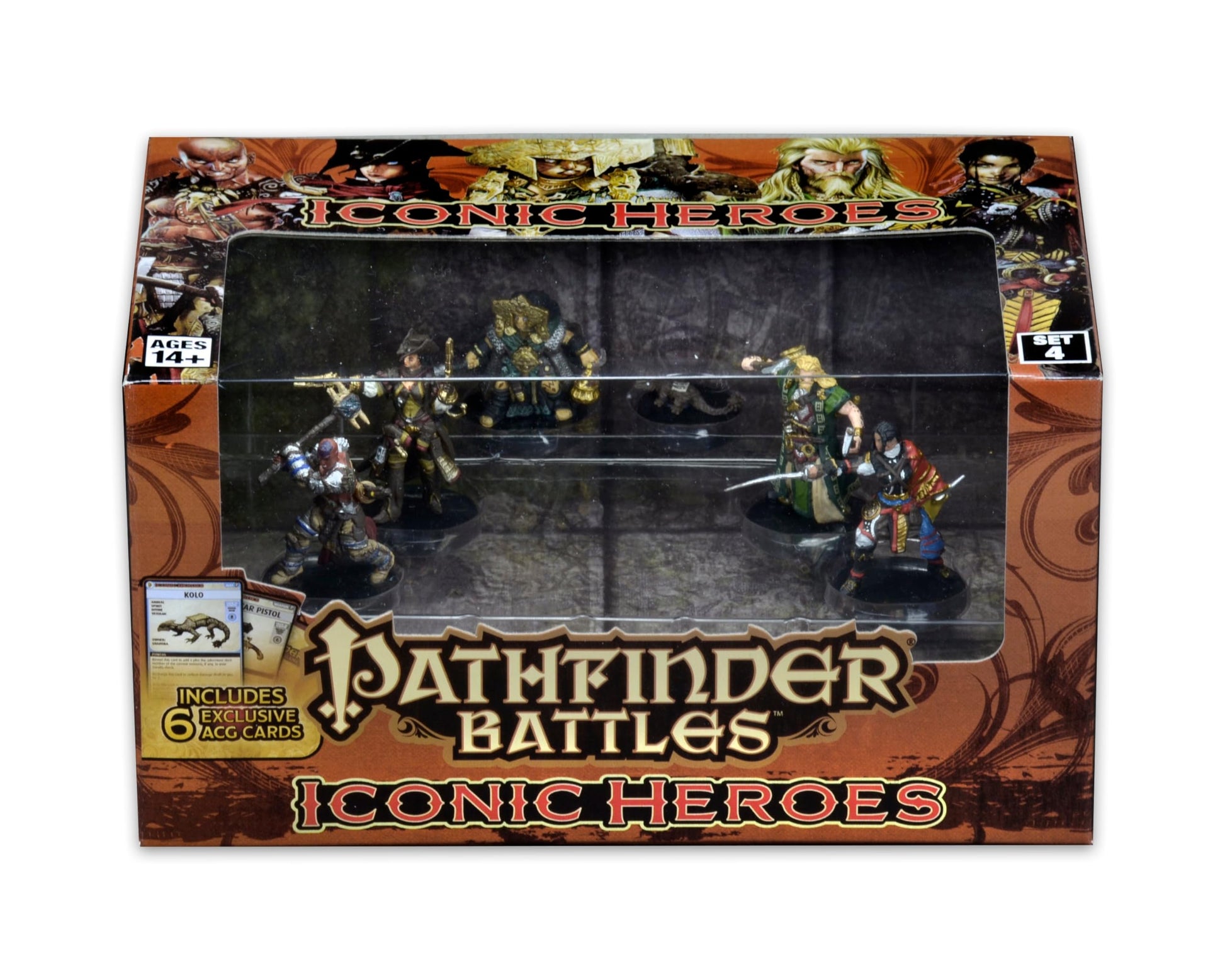 - Q: What miniatures are included in the WizKids Pathfinder Battles: Iconic Heroes Box Set IV? A: The Iconic Heroes Box Set IV includes six all-new miniatures featuring Crowe, Lirianne, Hakon, Jirelle, Shardra, and the Spirit Animal, Kolo, all crafted with unique sculpts.