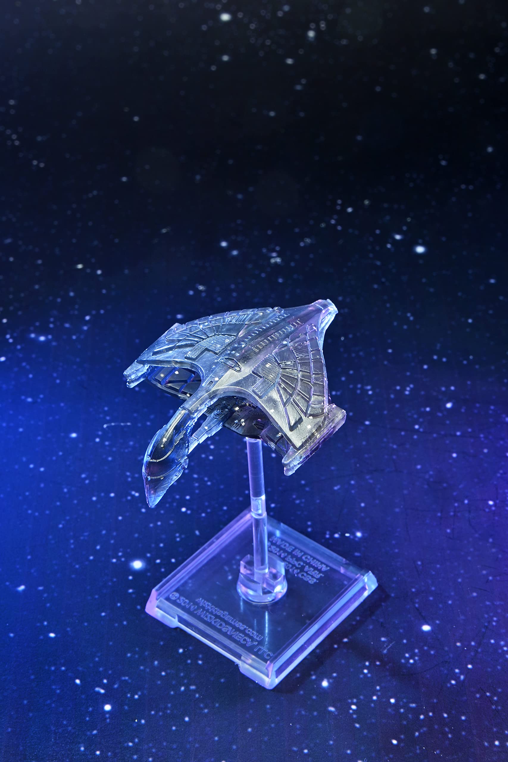 - Q: What materials are used in the construction of the ships in this pack? A: The ships in the Romulan Faction Pack are made from dark translucent plastic with shiny particles. This design helps create the illusion of cloaked ships disappearing among the stars during gameplay.