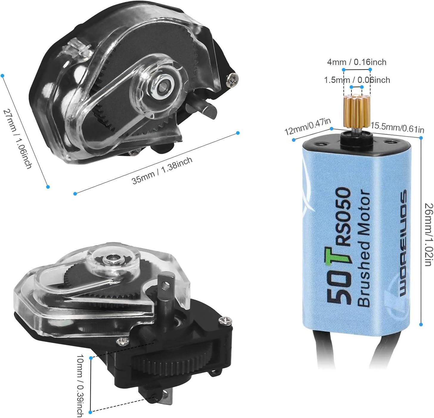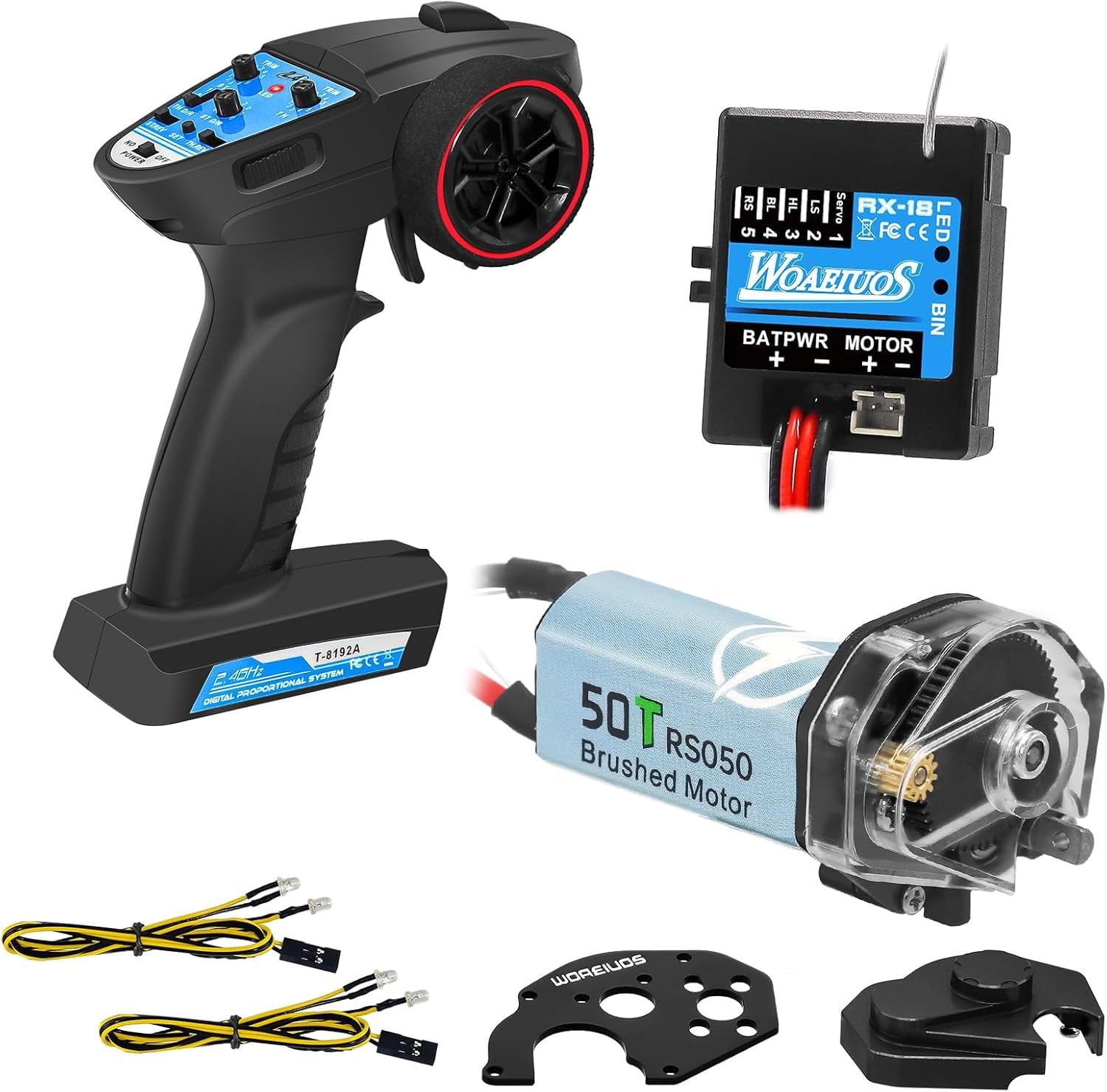 WOAEIUOS 2 in 1 ESC & Receiver 3CH 2.4G RC Transmitter Remote Controller with 050 50T Brushed Motor Transmission Gearbox Combo (