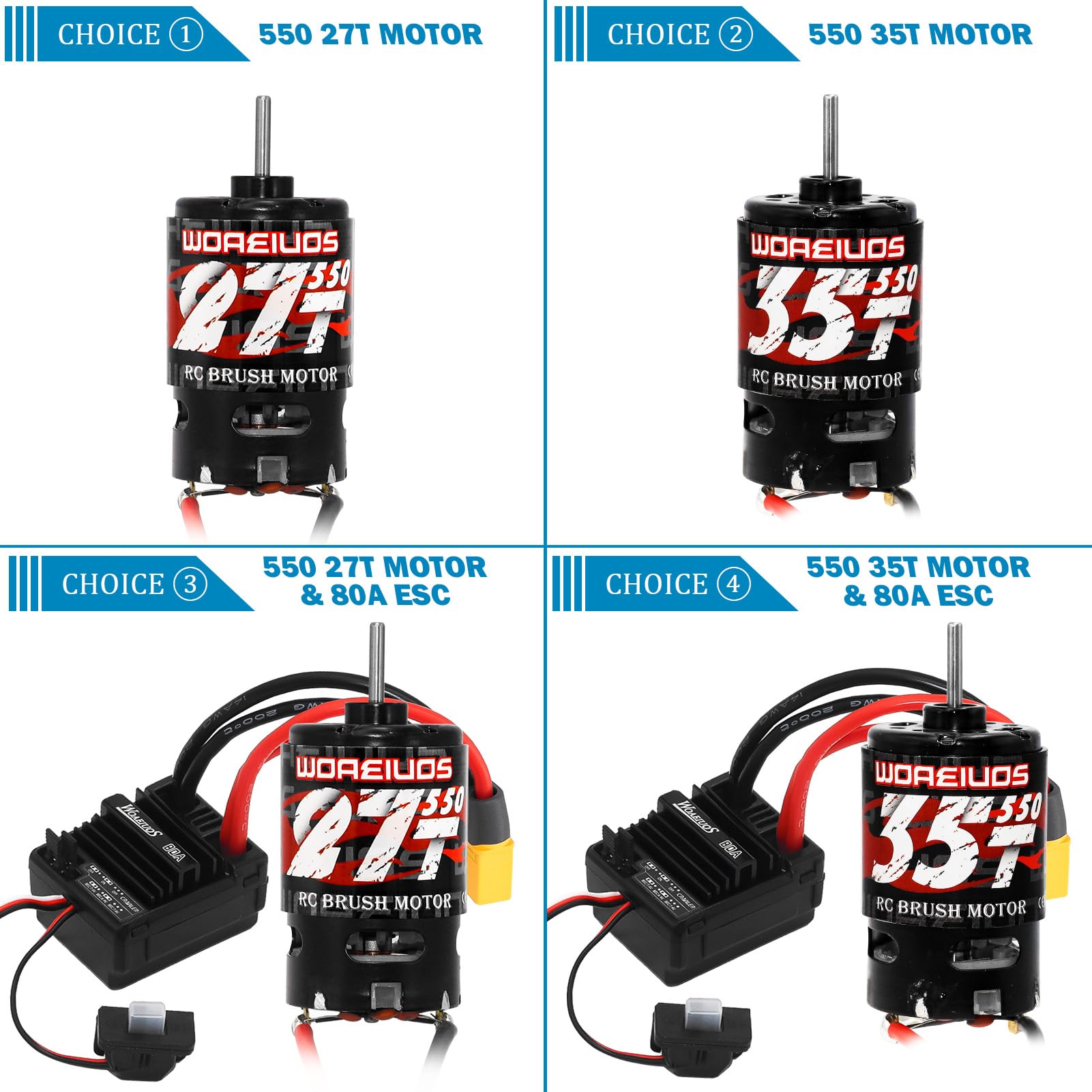 Superior Material: The 550 35 T brushed motor featured premium quality materials with high strength magnets for better and more stable performance, ensures long service life | High Performance: Size 550, Powerful motor has a 30% longer armature than a standard 540 size motor for extreme monster torque. Unlike other 550 Motor and 60 A ESC Combo sold on the market, we adopt a 80 A ESC replacing 60 A ESC to better solve the overcurrent and overload problem of the ESC | Copper Windings and Bearings: The high purity copper windings and sealed bearings are durable, with low friction and low noise | Come with an Extra Heatsink Cooling Fan: Besides the heatsink built in the 550 motor itself, we provide an extra heatsink cooling fan in the combo to better solve the overheat problem of the motor | Wild Application: Perfectly compatible with TRAXXAS 1/10 RC Off-Road TRX4 TRX6 TRX4 Bronco Pro Replacing Upgrades 3975R, 3975 Axial SCX10 SCX10II AXI03007 JL 90046 RC4WD D90