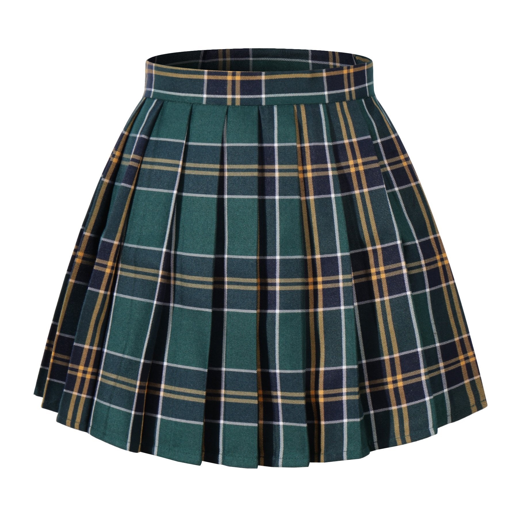 View compareWomens Pleat Plaid Mini Skirt High Waist Short Skirts (Xl,Dark Green Mixed White)