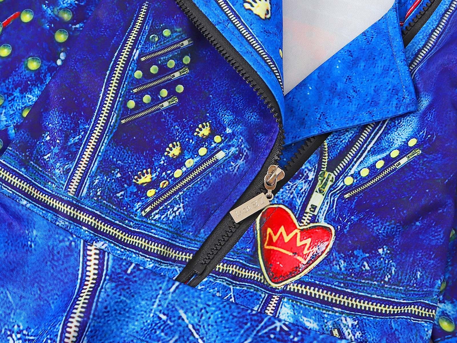 Wonderbabe Girls Evie Costume Kids Zipper Jacket Long Sleeve Dress Halloween Costume Party Cosplay Outfit With Wig