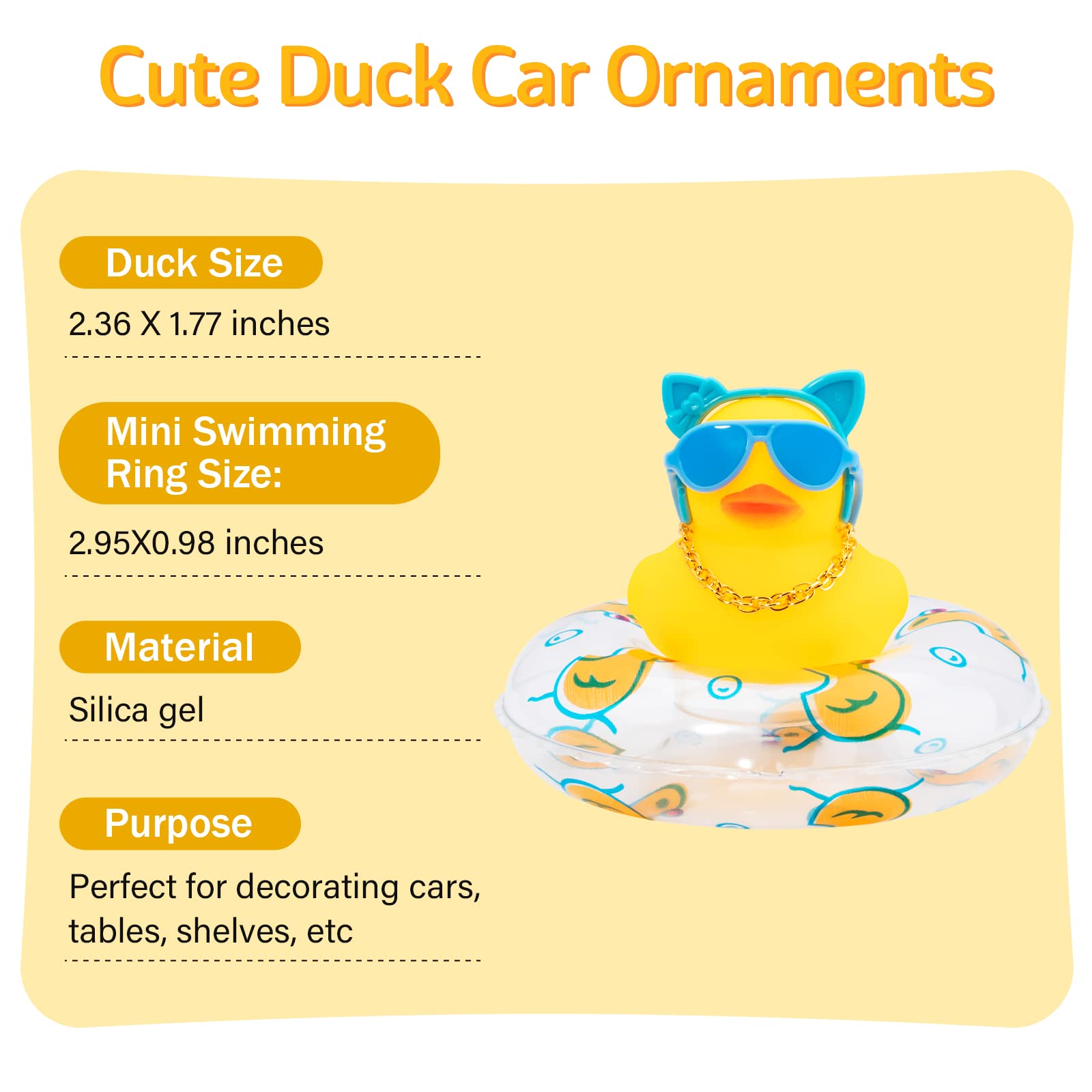 Wonuu Car Duck Rubber Duck Car Ornaments Duck Car Dashboard Decorations With Cute Headband Swim Ring Necklace Sunglasses, B-Blue