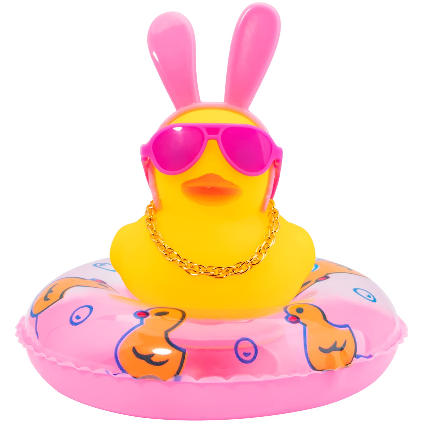 Wonuu Car Duck Rubber Duck Car Ornaments Duck Car Dashboard Decorations With Cute Headband Swim Ring Necklace Sunglasses, B-Pink