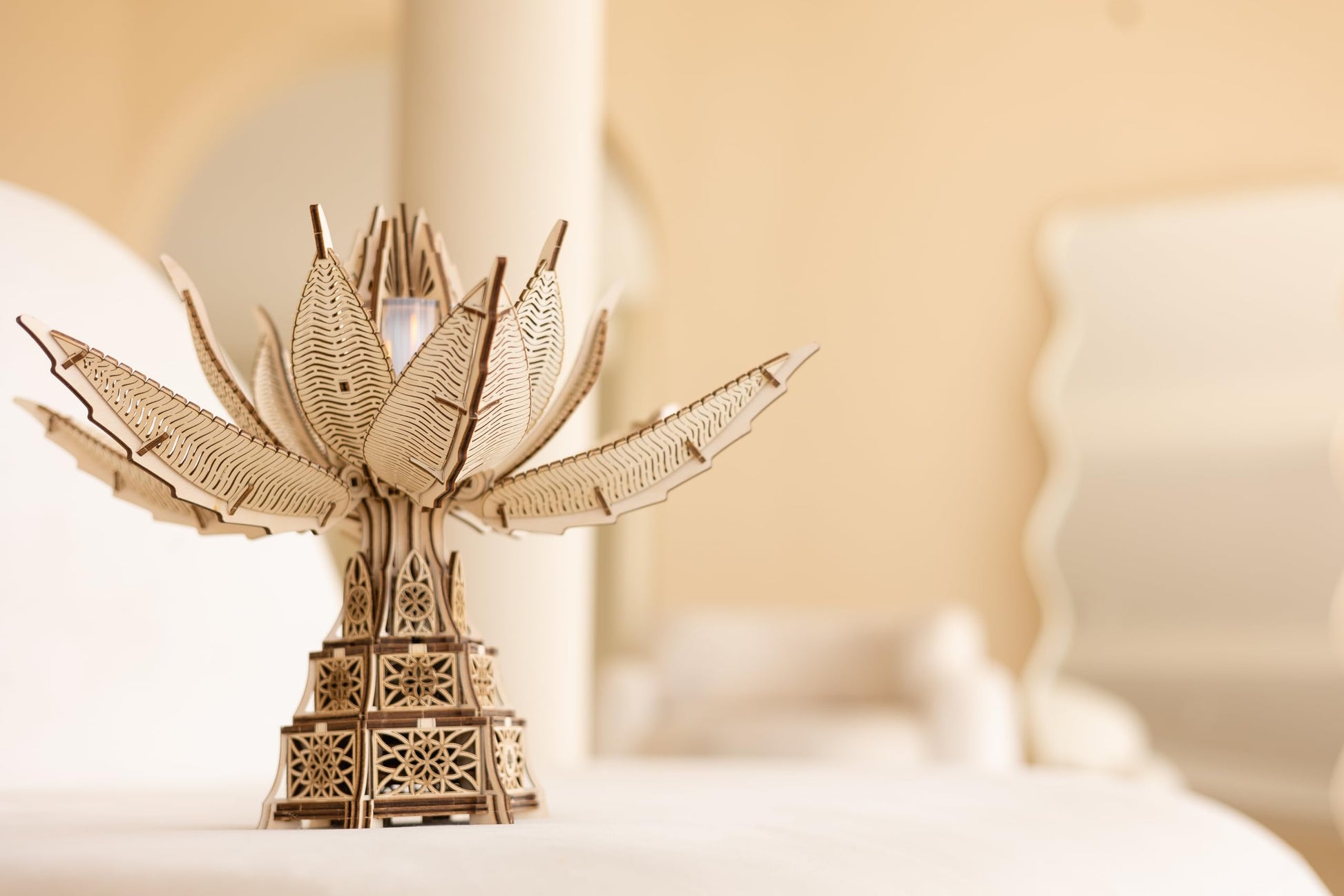 Wood Trick Fiery Bloom Luminous Led 3D Wooden Puzzles For Adults And Kids To Build - Interactive Mechanical Movement - Engineering Diy Project Mechanical 3D Puzzle Model Kits For Adults