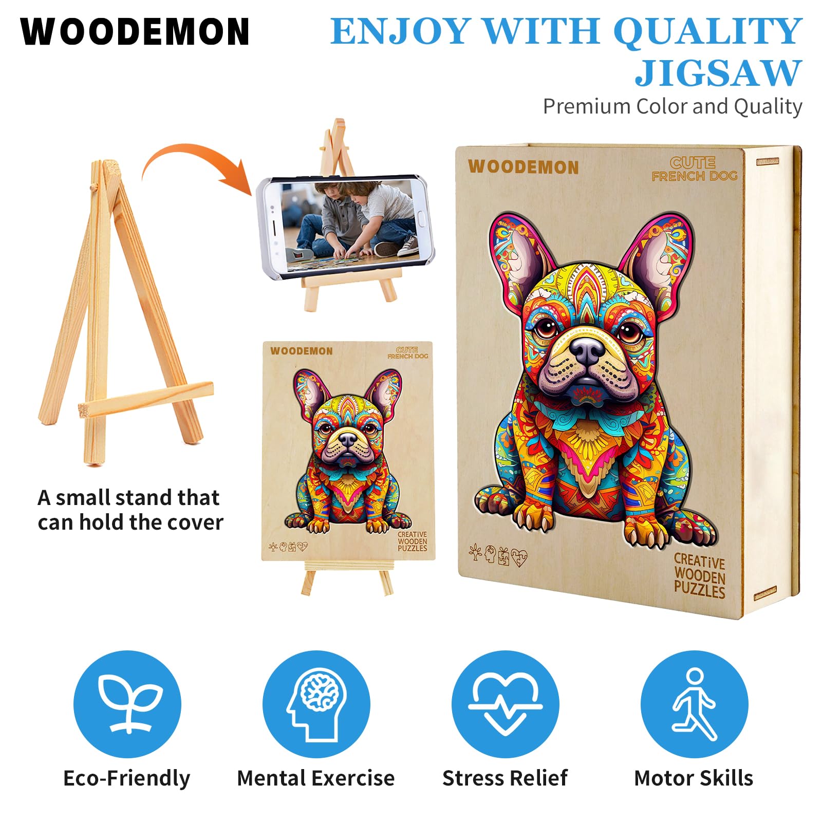 View compareWoodemon Wooden Puzzles For Adults And Kids, French Bulldog (M-180Pcs) Wooden Jigsaw Puzzles, Unique Shaped Animal Wood Puzzles, Wooden Animal Puzzles Christmas Xmas Gifts Family Puzzles Game 11.8*9In