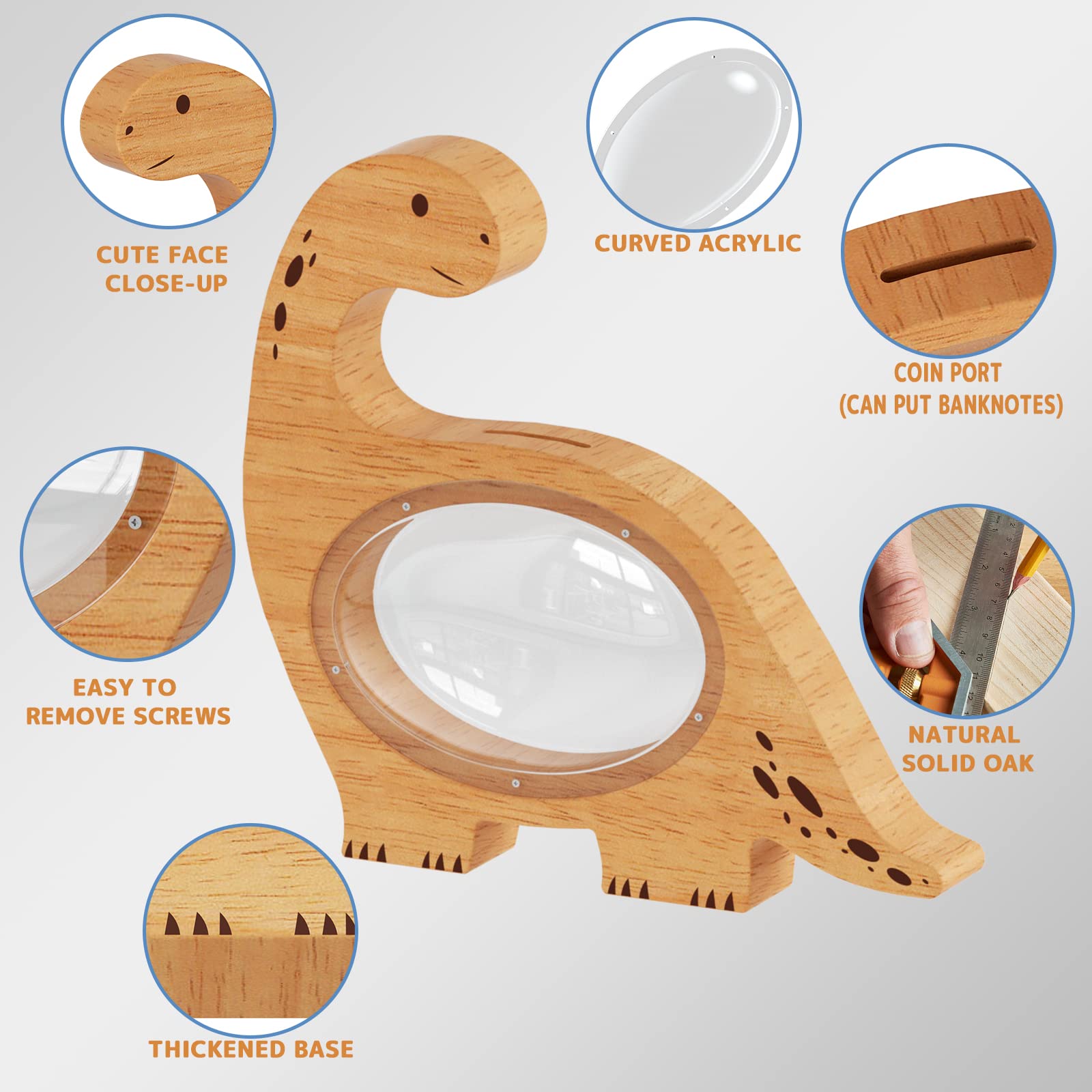 View compareWooden Clear Dinosaurs Piggy Bank For Boys Girls Kids, Large Unbreakable Wood Money Bank, Cute Coin Bank Creative Saving Bank For Christmas Birthday Gift Baby Shower (Brachiosaurus)…