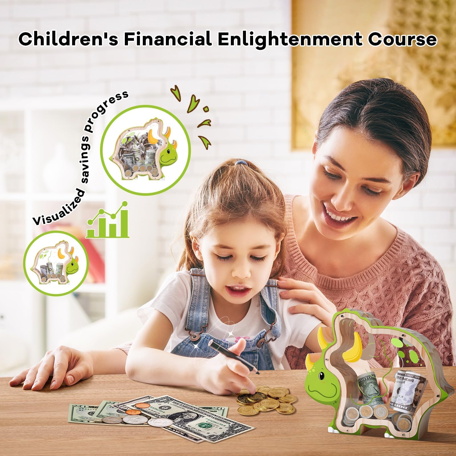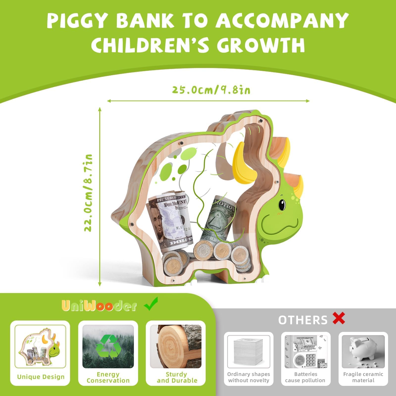 View compareWooden Dinosaur Triceratops Piggy Bank for Kids Money Coin Bank, Unbreakable Piggy Bank DIY Personalizable Kids Safe Money Box w