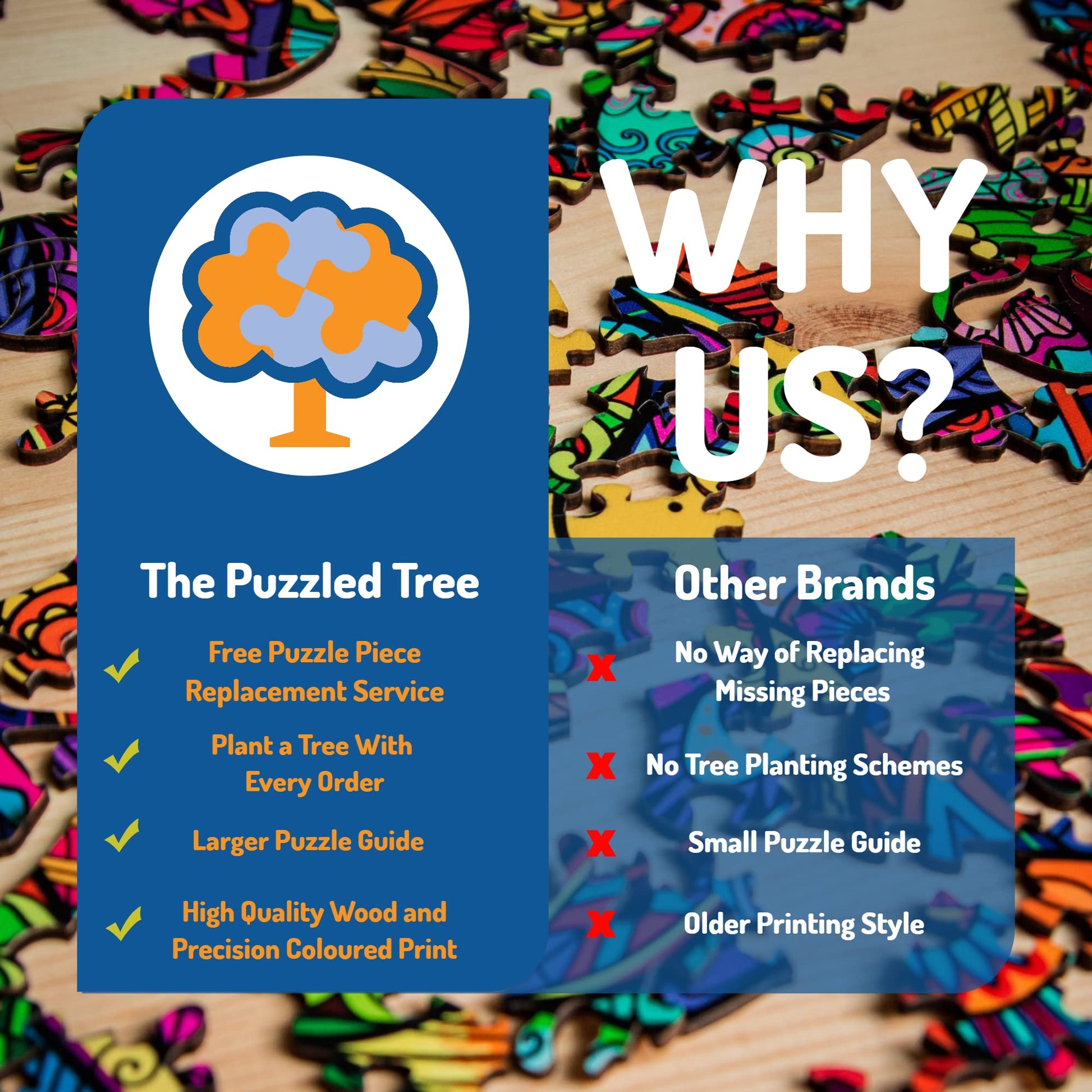 - Q: Does purchasing this puzzle support environmental initiatives? A: Yes! With every Wooden Jigsaw Puzzle order, one tree is planted through our partnership with 'One Tree Planted'. This initiative reflects our commitment to protecting the planet and promoting sustainability.