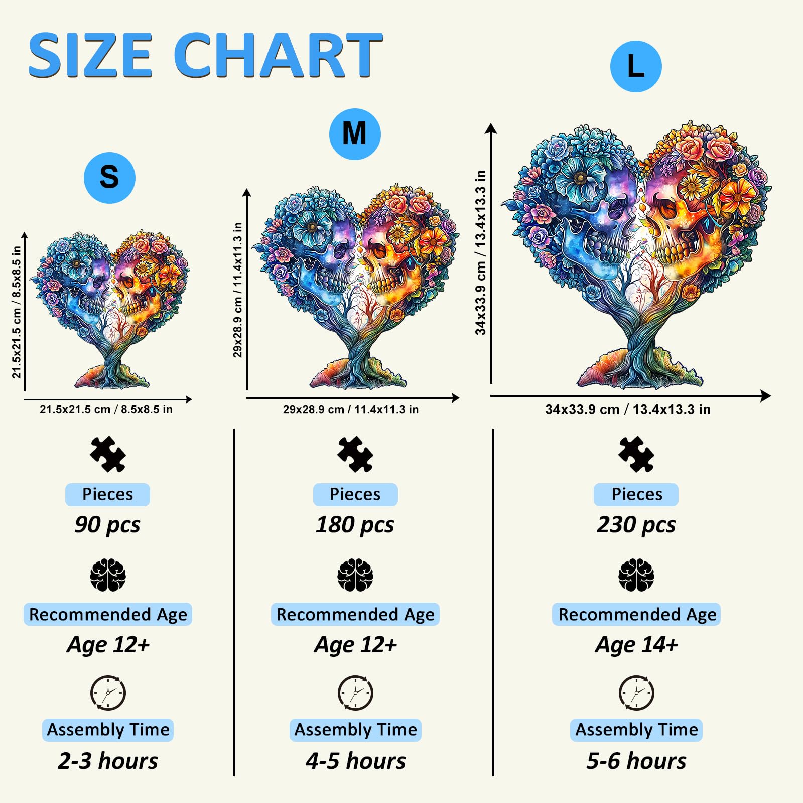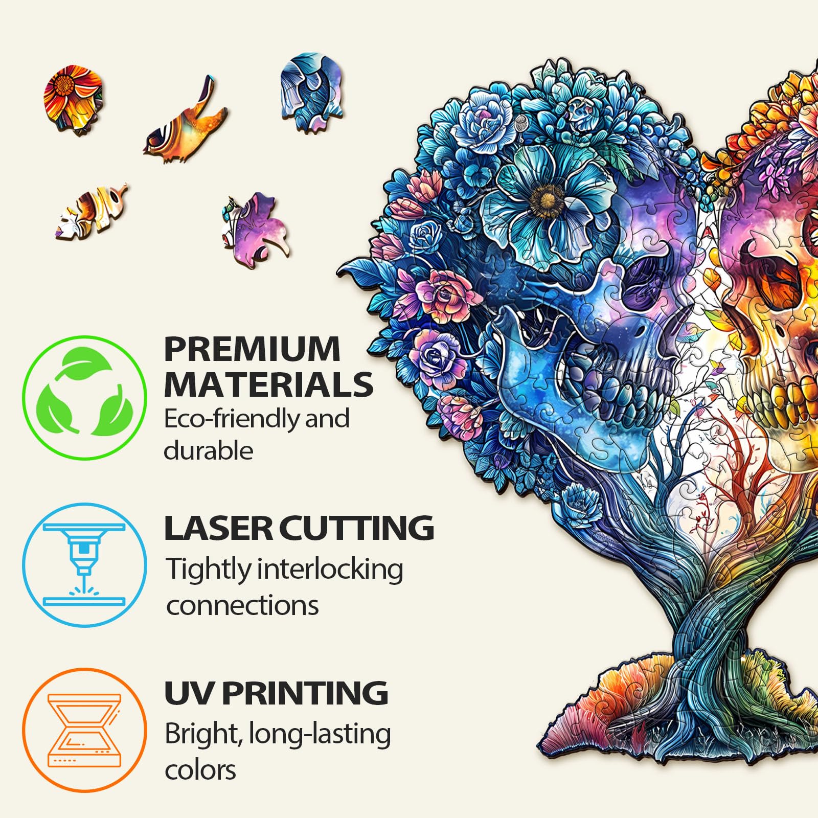 ?Skull Puzzles?: Each Jigsaw Puzzles Are Made Of Natural Wood, Strong And Durable. Each Puzzle Piece Is Sanded Smooth And Free Of Burrs, Harmless To Your Hands. | ?Family Puzzle Game?:Wooden Puzzles Are Great For Family Engagement. Families Can Complete The Puzzles Together To Enhance Relationship. After Completing The Puzzle, You Can Hang It On The Wall Or Place It On The Table, Adding Warmth And Personality To Your Home Space. | ?Relaxation And Fun?:Jigsaw Puzzle Is A Calming And Immersive Activity That Allows You To Unwind From Daily Stress And Anxiety. It Helps You Experience The Joy Of Creativity While Also Enhancing Cognitive Abilities And Focus. | ?Puzzle Gifts Choice?:Each Jigsaw Puzzle Is Carefully Designed By Our Designers With Different Shapes And Vivid Patterns. Whether You Challenge Yourself Or Give It To Someone Else, It Is The Great Gifts Choice For Christmas, Birthday, Mother'S Day, Father'S Day, Thanksgiving Etc. | ?Perfect Sales Service?:If You Have Any Questions About Our Jigsaw Puzzles, Please Feel Free To Contact Us And We Will Answer You Within 24 Hours. If The Puzzle Has Missing Pieces Or Broken, Please Contact Us To Solve.