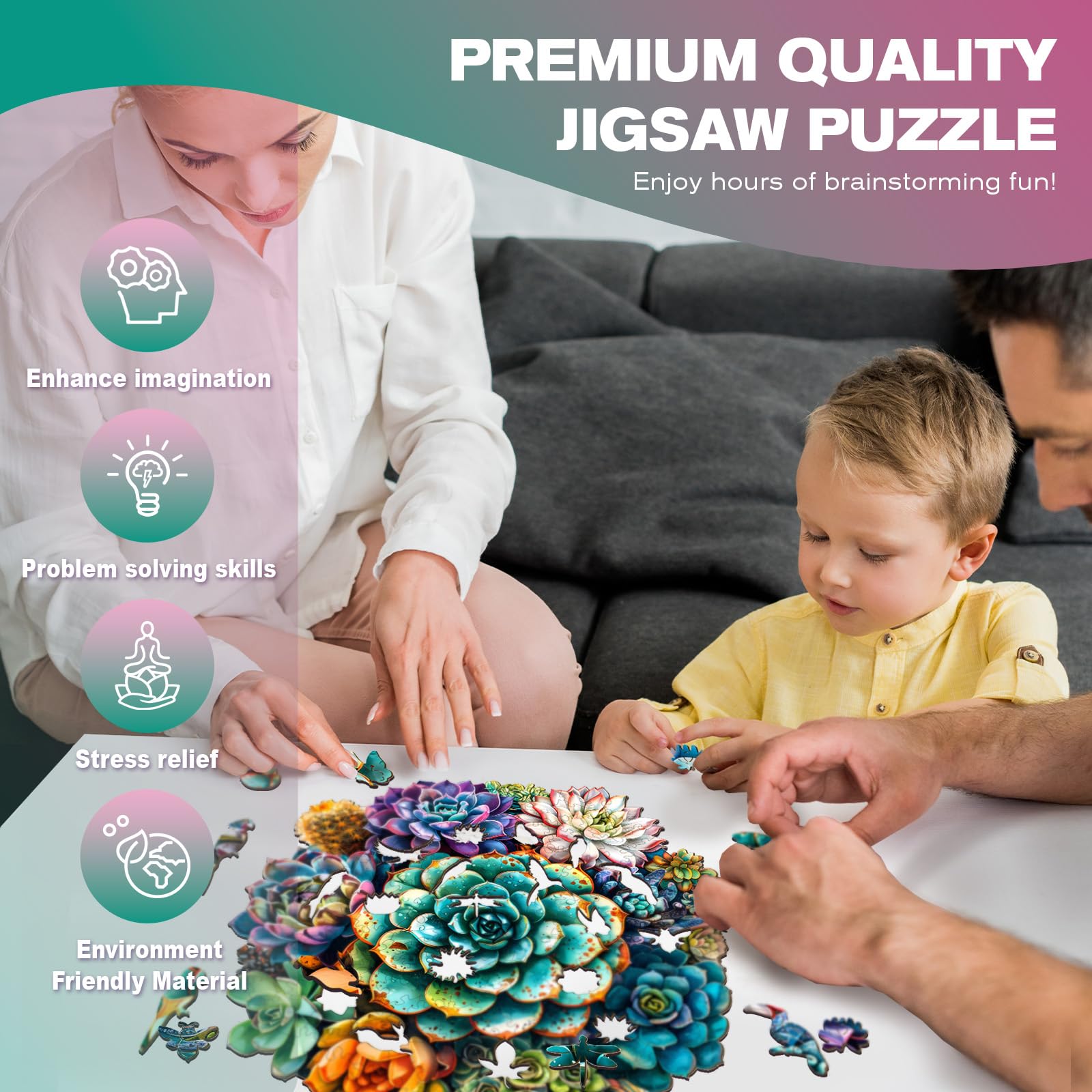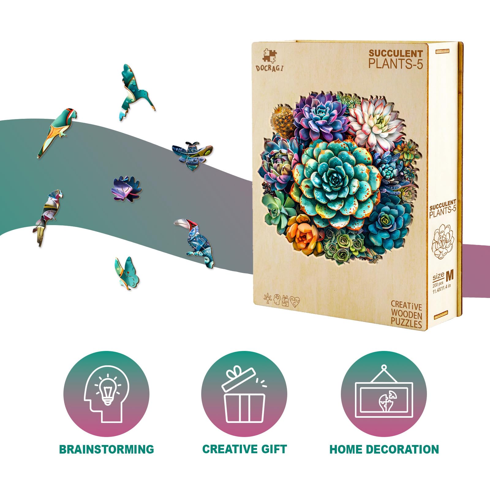 Wooden Puzzles for Adults - Unique Shaped Wooden Puzzles for Adults - Succulent Plants Wooden Jigsaw Puzzles - Wooden Puzzle Cre