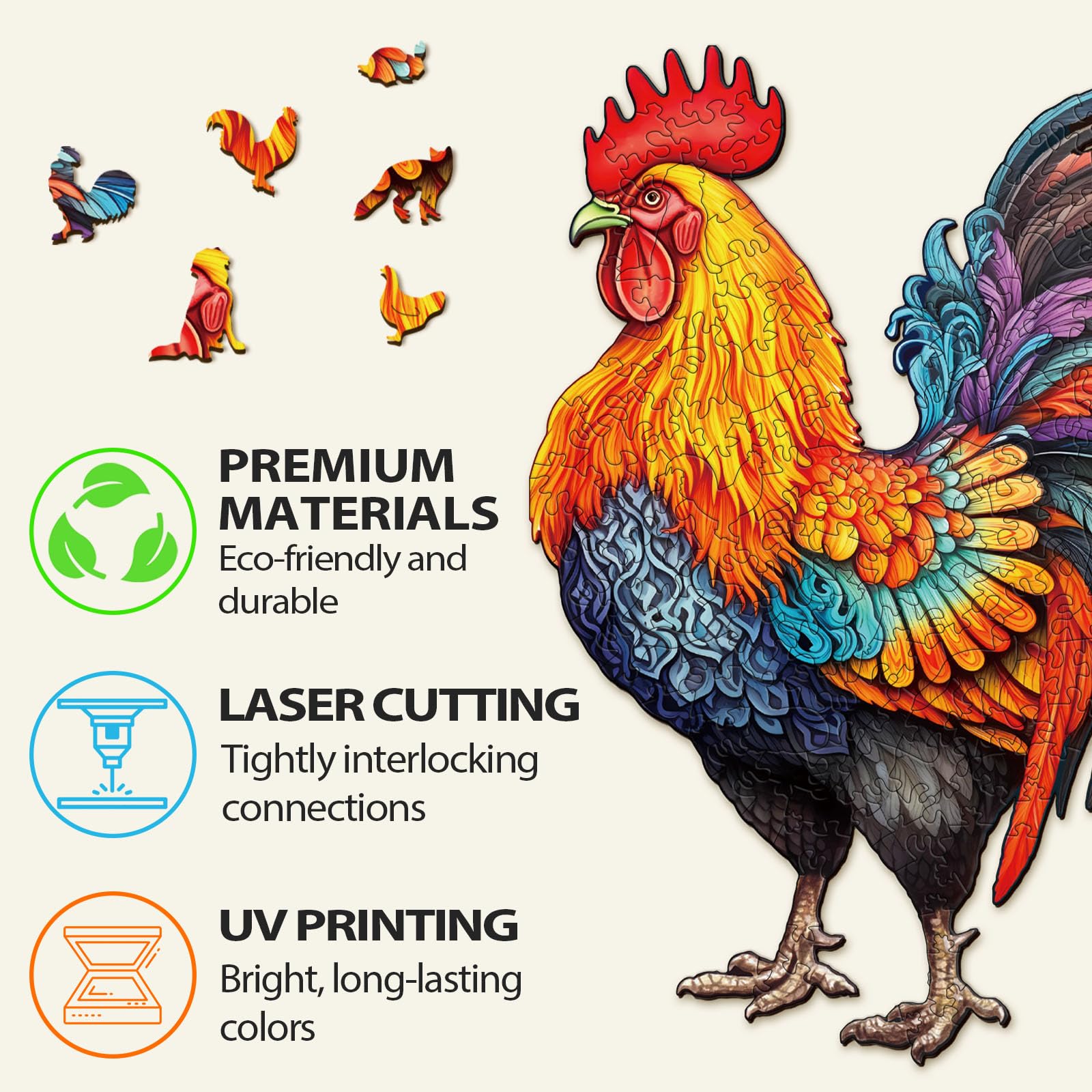 ?Rooster Puzzles?: Our Rooster Puzzles Are Made Of Natural Wood. Carefully Selected To Ensure The Material Is Strong And Durable. Each Puzzle Piece Is Sanded Smooth And Free Of Burrs, Harmless To Your Hands. | ?Unique Puzzles Design?: Each Wooden Puzzle Is Carefully Designed By Our Designers With Different Shapes And Vivid Patterns. 3 Sizes From Easy To Hard, To Meet The Needs Of A Variety Of People. Unique Puzzle Gifts For Puzzle Lovers On Christmas, Birthdays, Mother'S Day, Father'S Day, Thanksgiving And Other Holidays. | ?Relaxing & Fun?: Jigsaw Puzzles Are A Calming And Immersive Activity That Can Give You A Break From Everyday Stress And Anxiety. It Can Help You Experience The Joy Of Creation While Improving Cognitive Skills And Concentration. | ?Family Puzzle Game?: Wooden Puzzles Are Great For Family Engagement. Families Can Complete The Puzzles Together To Enhance Relationship And Promote Communication And Cooperation. | ?Customer Service?: If You Have Any Questions About Our Puzzles, Please Feel Free To Contact Us And We Will Answer You Within 24 Hours. If The Puzzle Has Missing Pieces Or Broken, Please Contact Us To Solve.