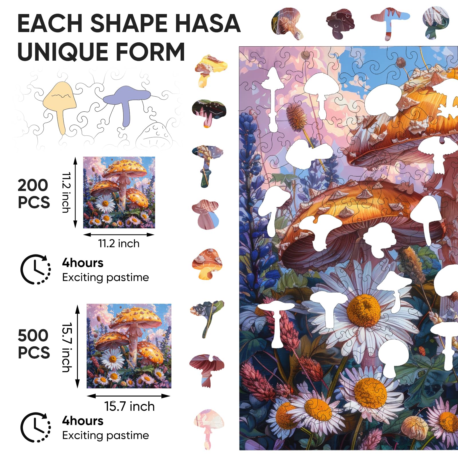Wooden Puzzles for mature-themeds 200 Pieces Mushroom Flower Wooden Jigsaw Puzzles for mature-themed and Kids 11.2 Inch Medium Size Family Reunion Puzzle Valentine's Day Puzzle Gifts for Lovers Friends and Family