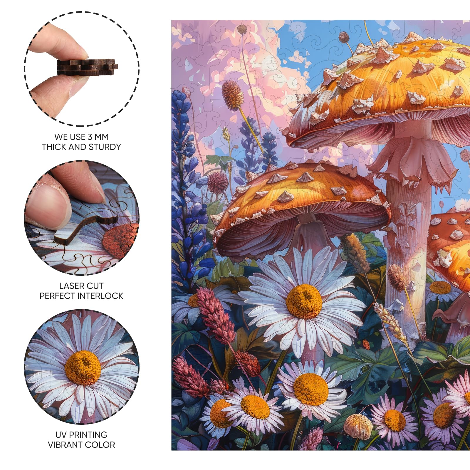 View compareWooden Puzzles for mature-themeds 200 Pieces Mushroom Flower Wooden Jigsaw Puzzles for mature-themed and Kids 11.2 Inch Medium Size Family Reunion Puzzle Valentine's Day Puzzle Gifts for Lovers Friends and Family