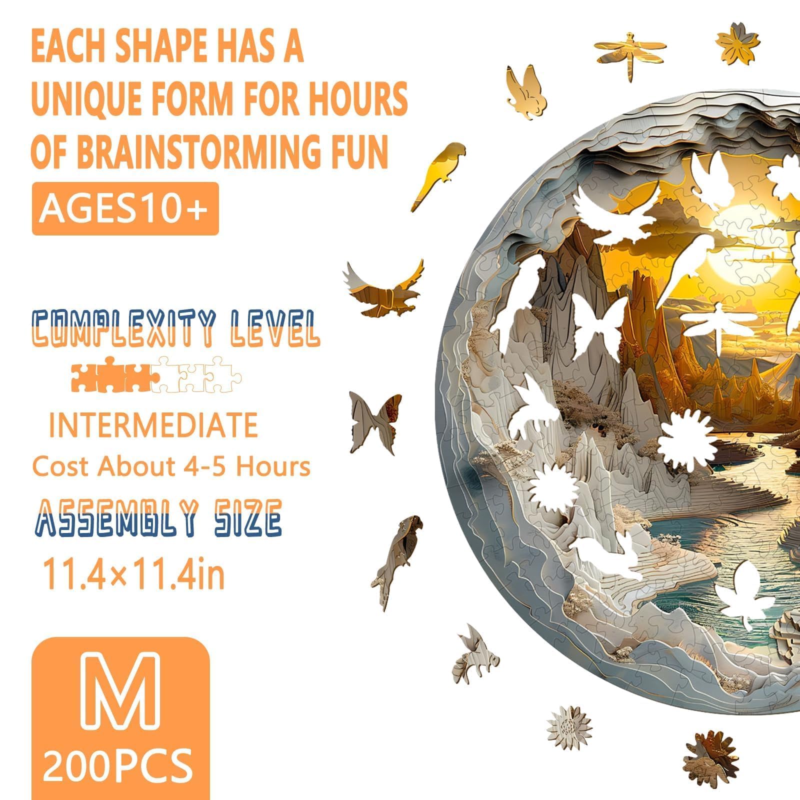 Wooden Puzzles for mature-themeds 3D Vision Effects Inside The Cave Wood Puzzles mature-themed Mountain Rivulet Sunset Landscape Wooden Jigsaw Puzzles for mature-themeds Home Decor (M-11.4 * 11.4in -200 pcs)