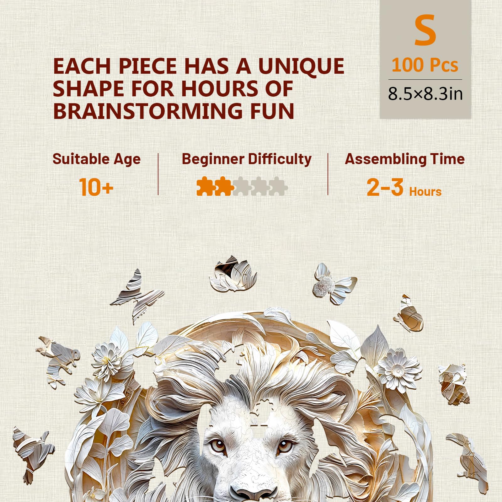 View compareWooden Puzzles for mature-themeds 3D Visual Effect Paper Lion Puzzle Wood Puzzles mature-themed Unique Animal Shape Paper Sculpture Modern Art Puzzle Gifts for Friend Canvas Wall Art (S-8.5 * 8.3in-100 pcs)