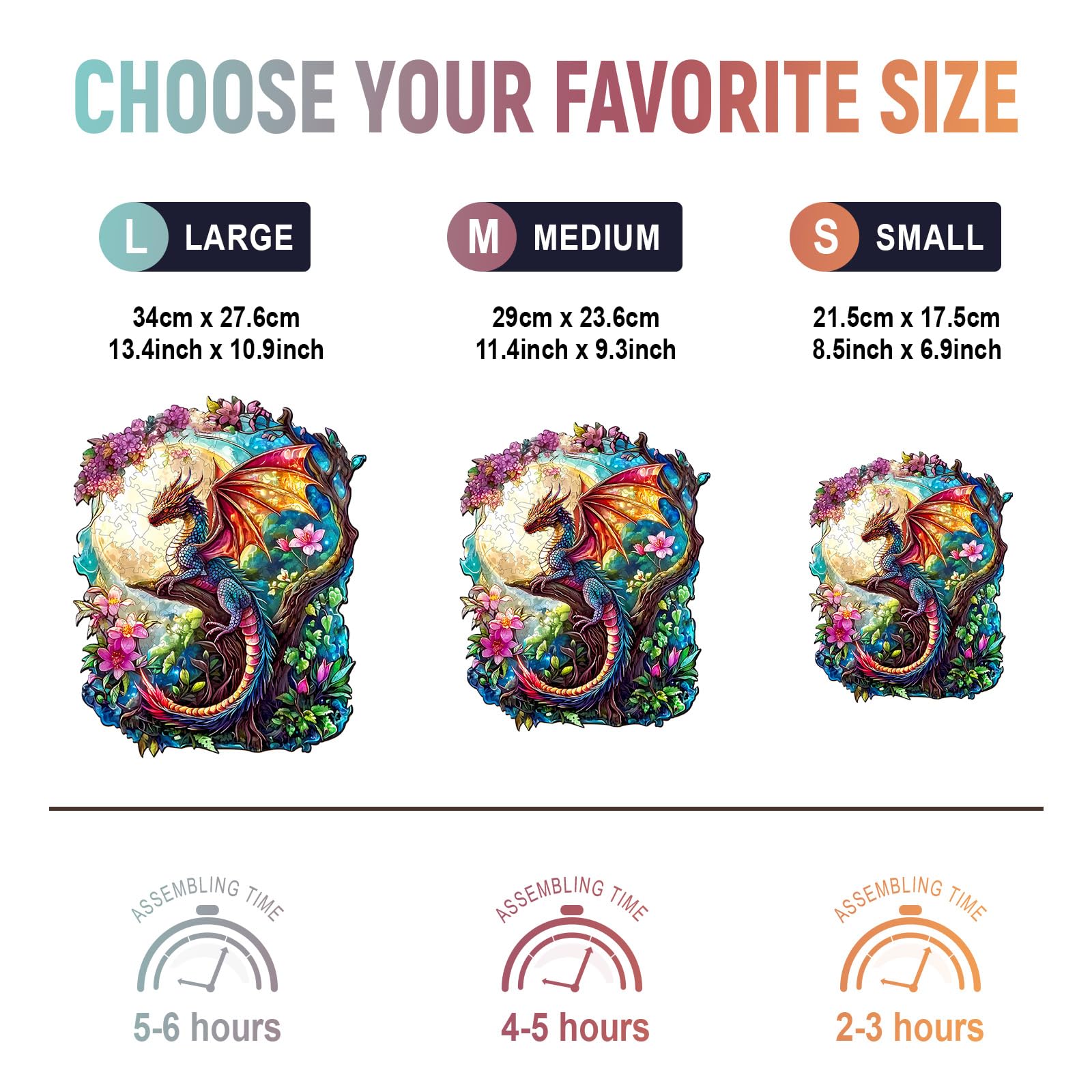 Dragon in Moonlight Wooden Puzzle: This wooden jigsaw puzzle takes inspiration from nature featuring irregularly shaped animal pieces. The original hand-drawn designs not only provide a puzzle-solving experience but also serve as unique home d