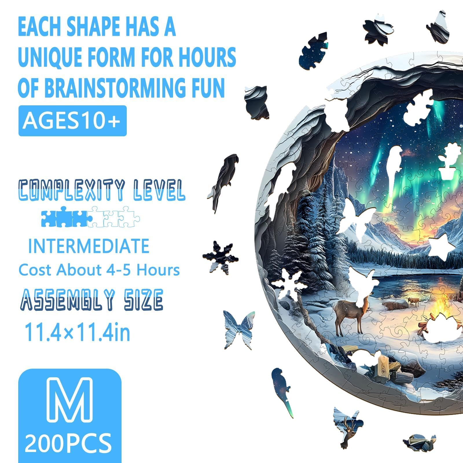 Wooden Puzzles for mature-themeds Flat Puzzle with 3D Visual Effect Aurora World Wooden Jigsaw Puzzles for mature-themeds 200 Pieces Winter Wood Puzzles mature-themed Unique Shape Wall Art Canvas Puzzle (M-11.4*11.4in)
