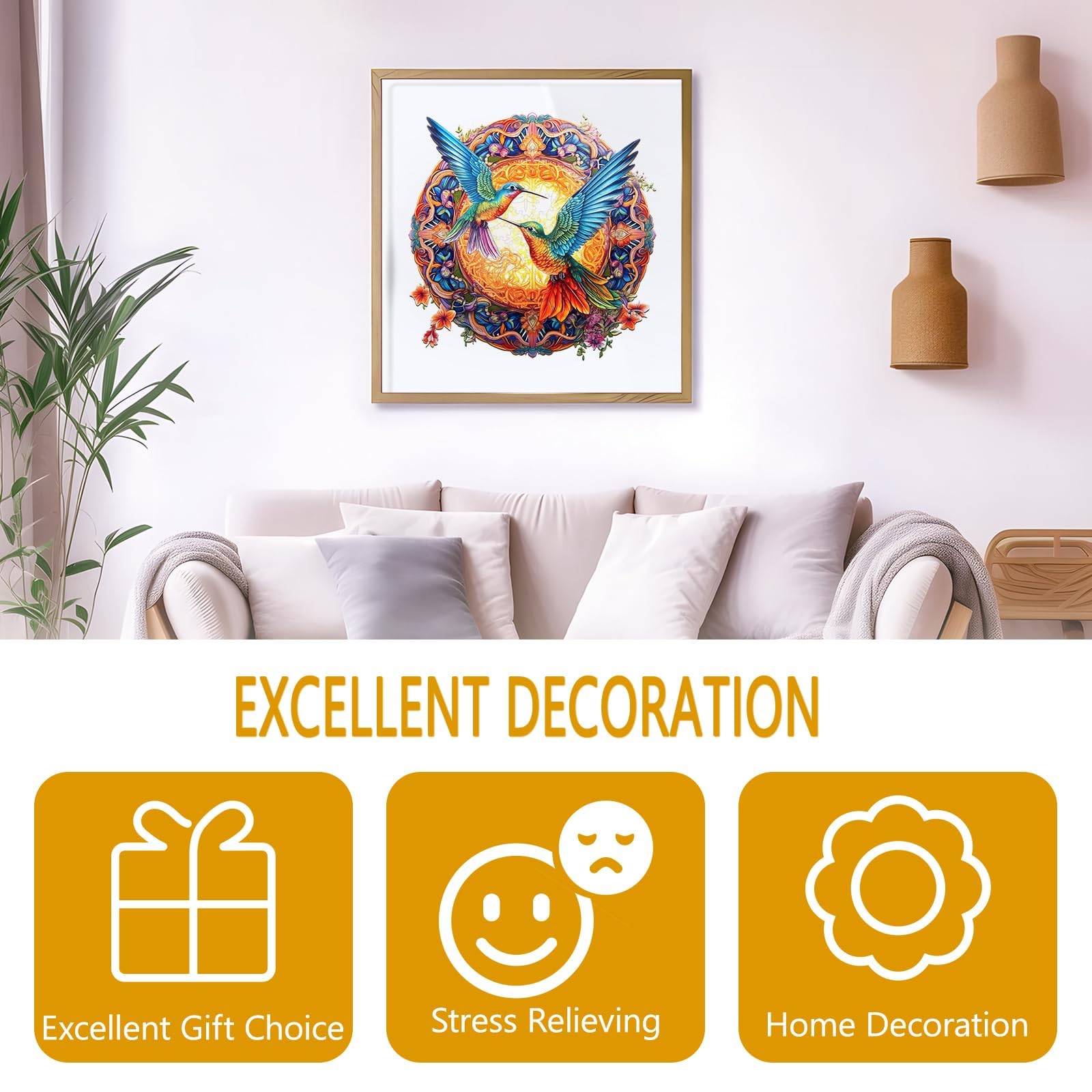 Wooden Puzzles for mature-themeds - Hummingbird Wooden Puzzle Mandala Unique Shaped Wooden Jigsaw Puzzles for mature-themeds Wood Puzzles mature-themed Perfect for Birthday Gift Family Game 300 Piece 13.8 x 13.8in