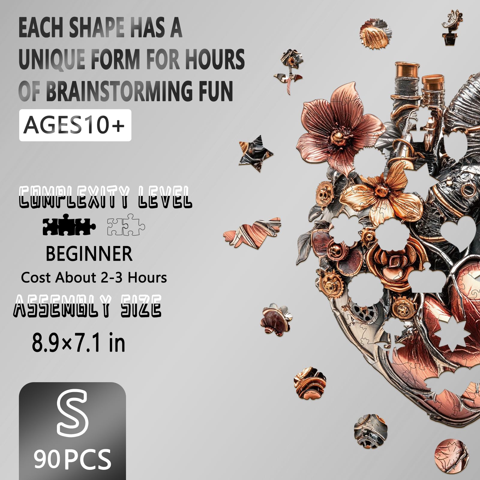 Wooden Puzzles for mature-themeds Mechanical Heart Wooden Jigsaw Puzzle Unique Shaped Wood Puzzles mature-themed Fun Gifts for Mother's Day Heart Puzzle Home Decor (M-12 * 9.6in 155 Pieces)