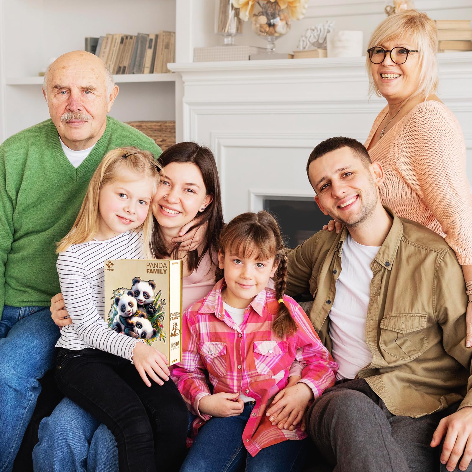 Wooden Puzzles for mature-themeds Panda Family Wooden Jigsaw Puzzles for mature-themeds Kids Unique Shaped Wood Puzzles mature-themed Creative Birthday Gifts for Friends Family Game(13.4 * 13.1in 270pcs)