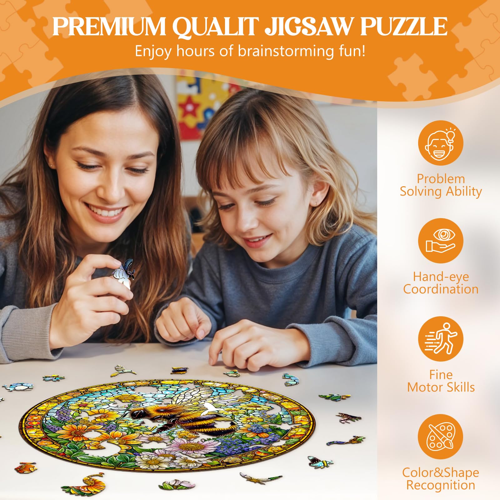 Wooden Puzzles for mature-themeds Wooden Jigsaw Puzzles for mature-themeds Kids Bee Spring Unique Shaped Wood Puzzles mature-themed Creative Birthday Gifts for Friends Family Game Home Decor (11.4 * 11.4in 200pcs)