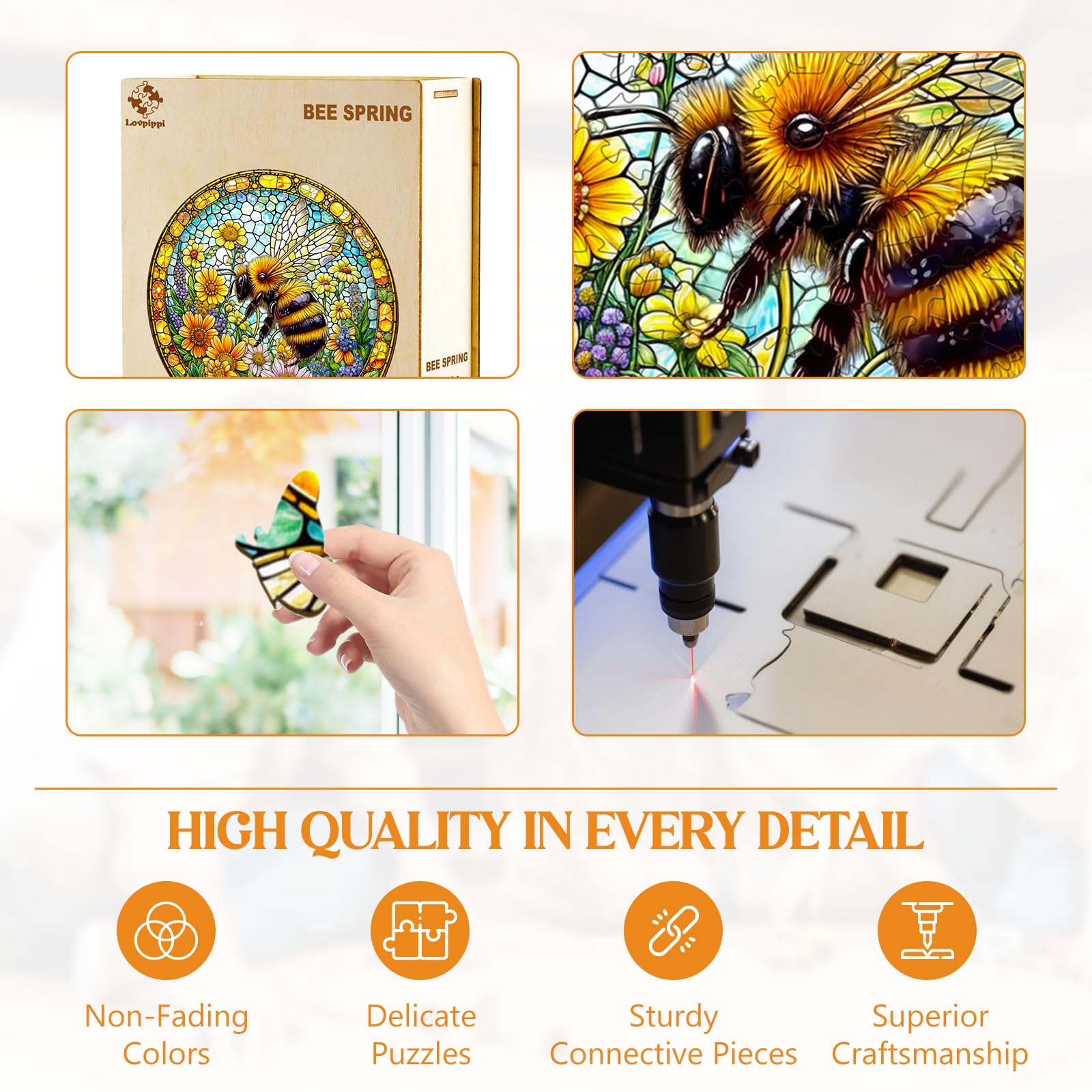 The completion of the unique wooden puzzle is full of fun and is a great choice for family games. --If you are looking for a special holiday Christmas gift or birthday gift this wooden puzzle is the perfect choice. Surprise and joy for the whole family and friends! This fun puzzle gift is great for everyone! This Bee Spring shaped jigsaw puzzle is made of well-made natural wood safe and durable. Package Included: 300 pieces of wooden puzzle - Bee Spring 3-4 sizes available Suitable for 10 years and up Exquisite gift box packaging