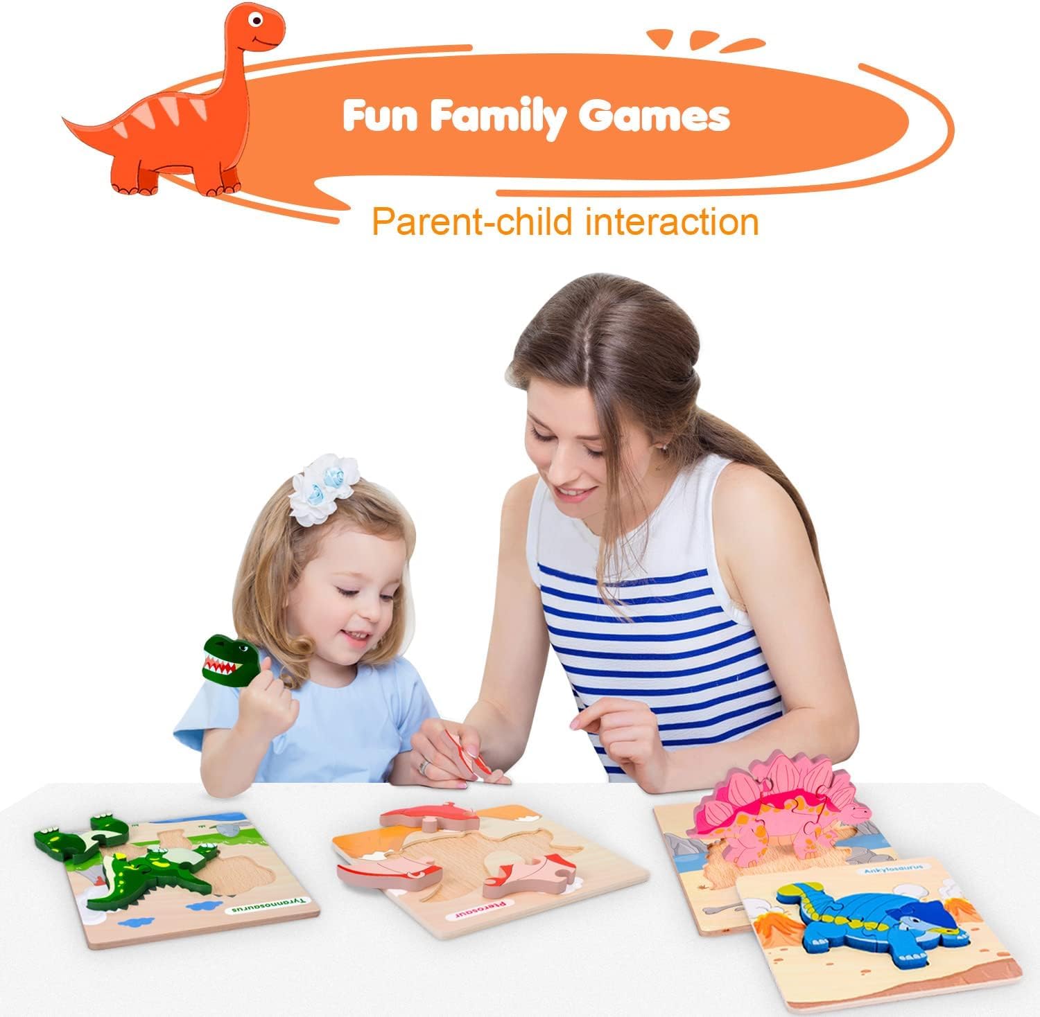 Wooden Puzzles For Toddler, Toys For 1 2 3 Year Old Boys Girls Baby Infant Kids Montessori Learning 6 Animal Pattern Jigsaw Puzz
