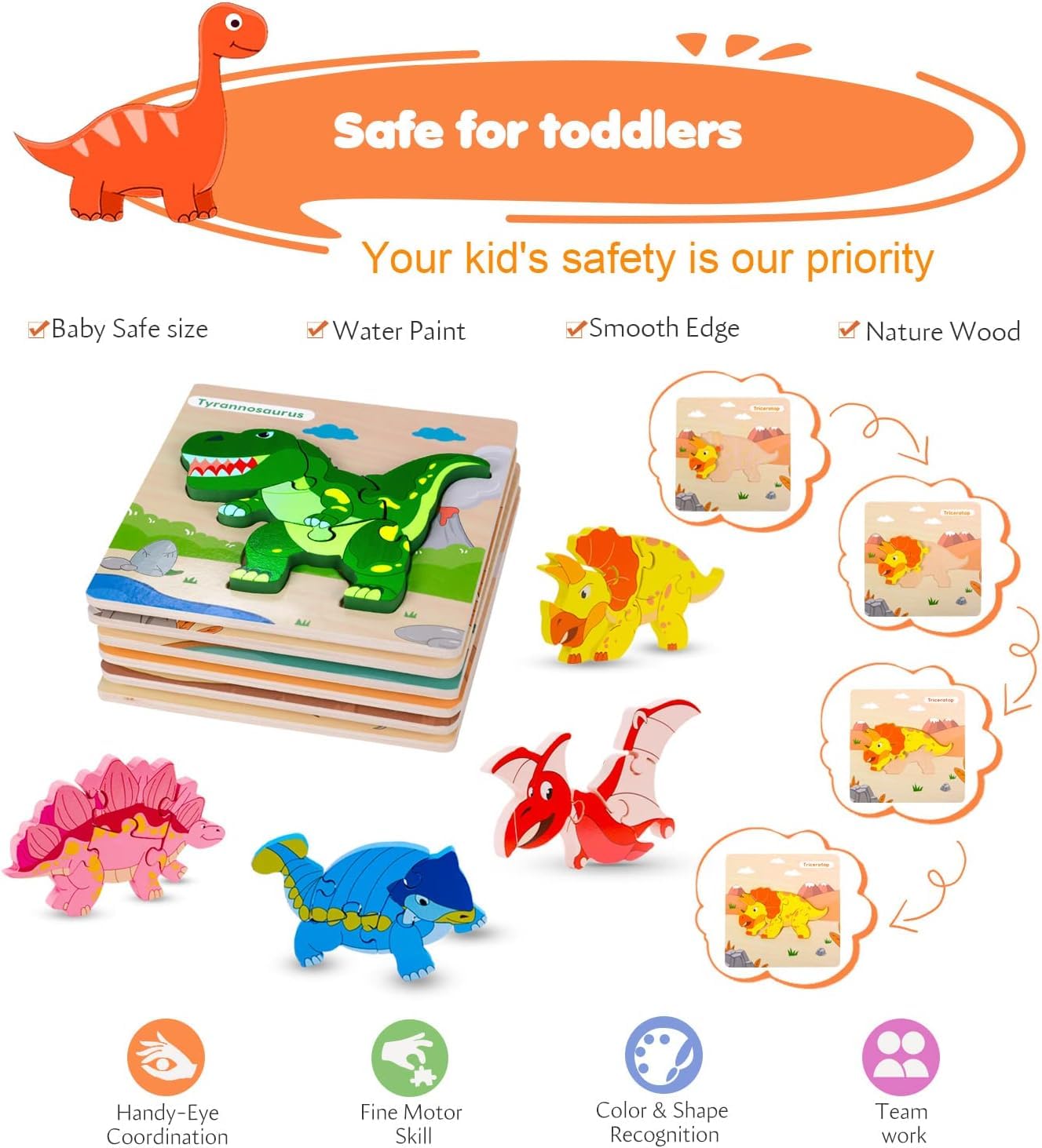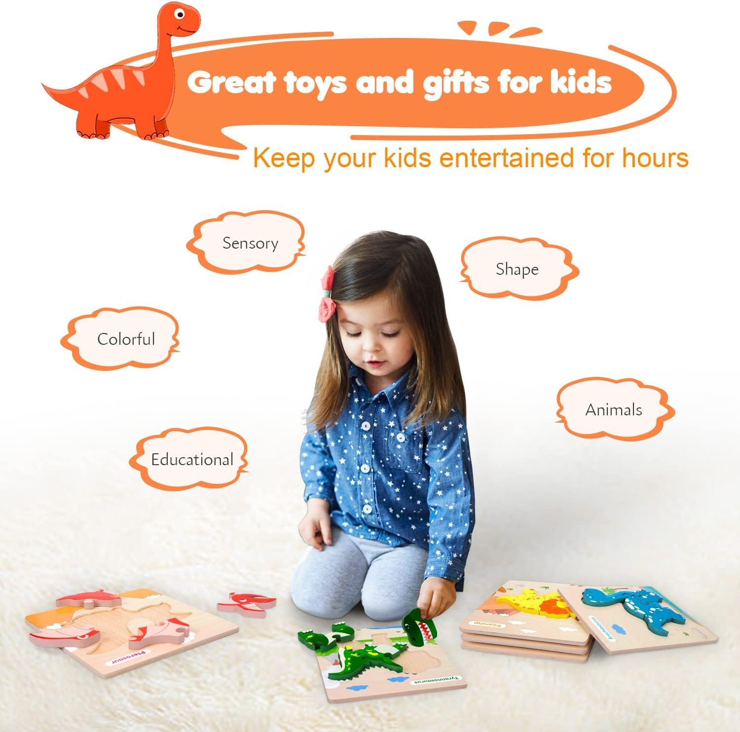 View compareWooden Puzzles For Toddler, Toys For 1 2 3 Year Old Boys Girls Baby Infant Kids Montessori Learning 6 Animal Pattern Jigsaw Puzz