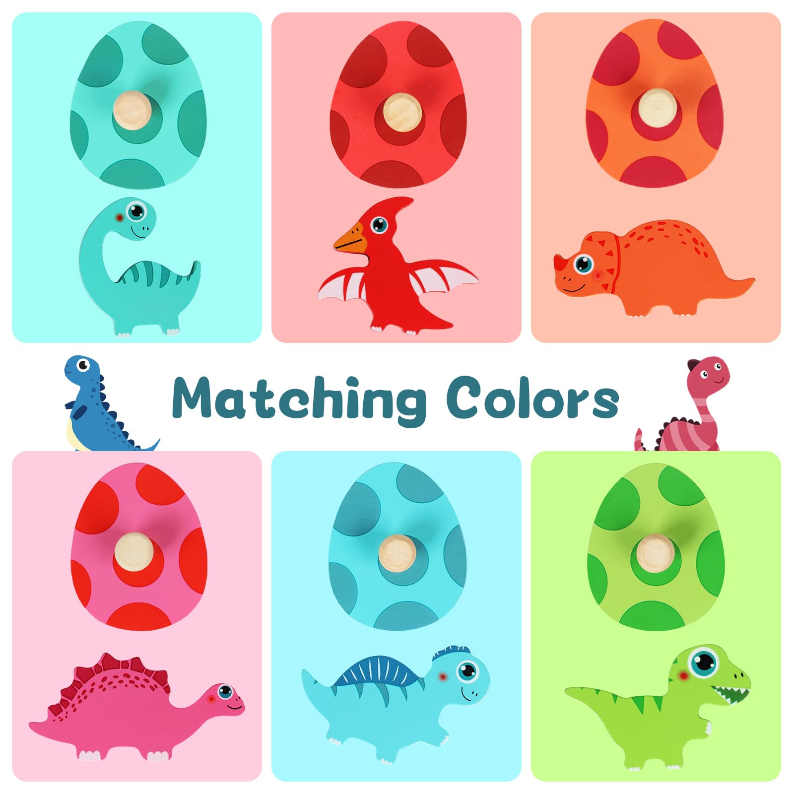 Wooden Puzzles Toys For Toddlers 1-3, Montessori Toys For 1 2 3 Year Old Boy Girl Birthday Christmas Gifts, Dinosaur Match Eggs Peg Puzzles Preschool Learning Toys For Toddlers Age 1-3, 2-4