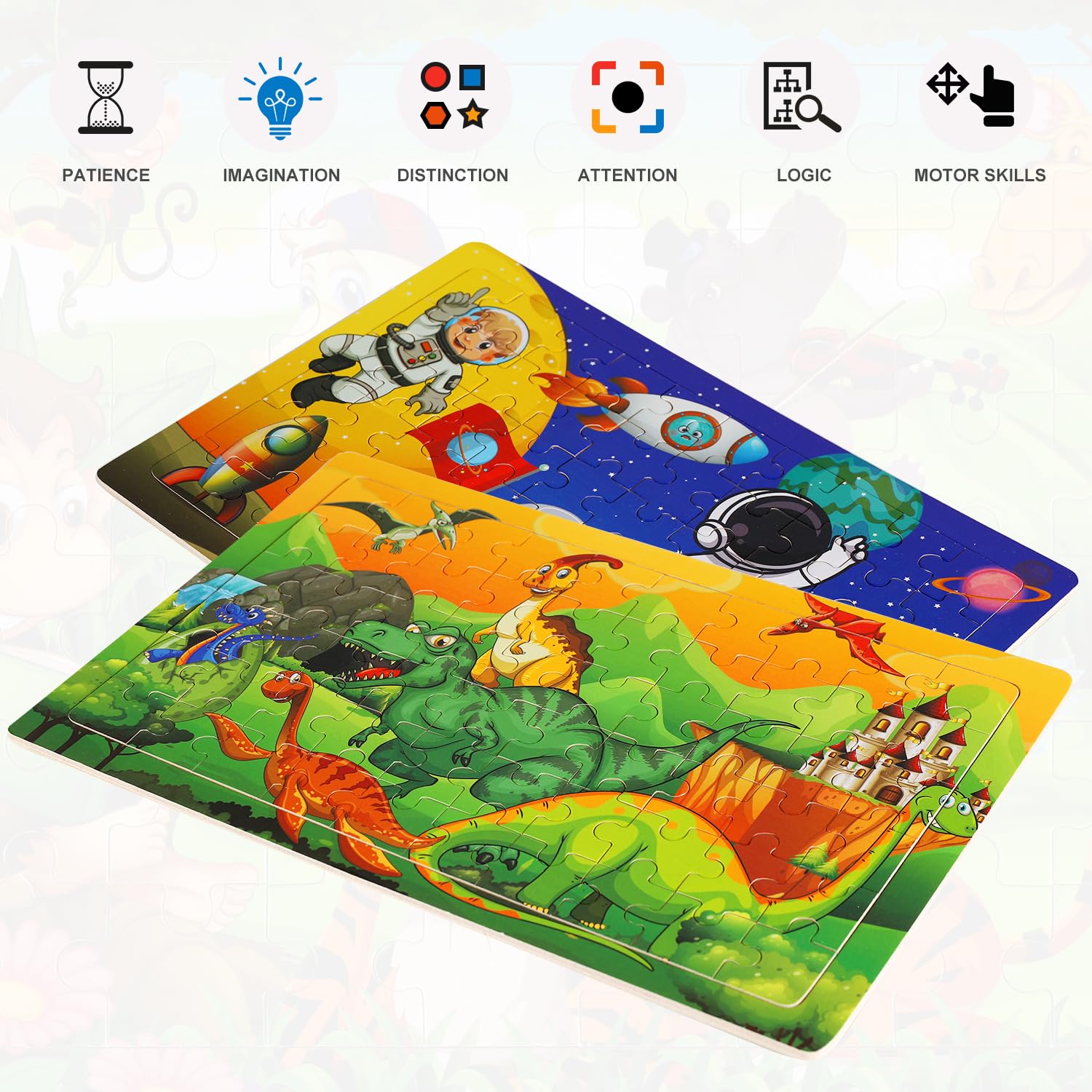 View compareWooden Puzzles Toys For Kids Ages 4-6, Set Of 3 Packs With 60-Piece Wood Jigsaw Puzzles, Dinosaur, Animal And Space Theme. Ideal Gifts For Boys And Girls 3 4 5 6 7 8 Years Old